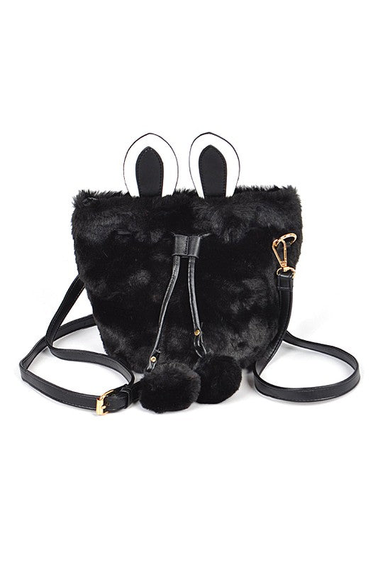 Faux Fur Plush Bunny Ear Crossbody Swing Bag