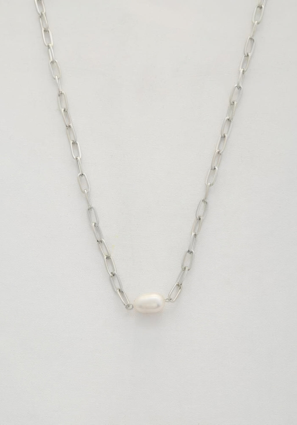 This necklace effortlessly combines the timeless elegance of pearl beads with the chic design of oval links, making it a sophisticated and essential accessory for those who appreciate classic and stylish jewelry.
