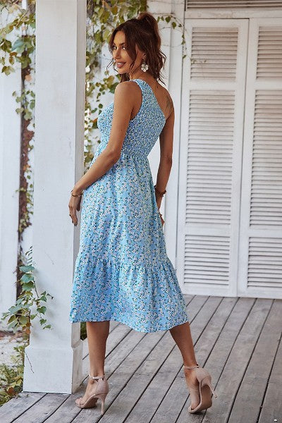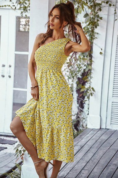 Floral one shoulder smocked dress
