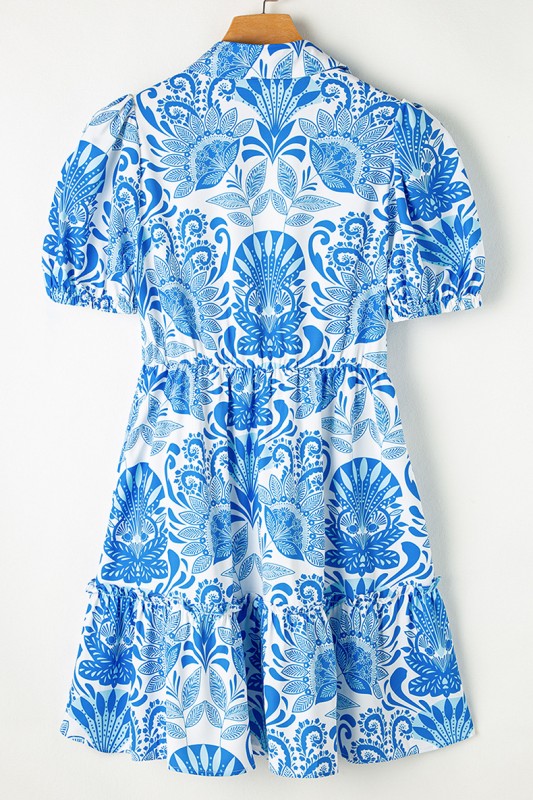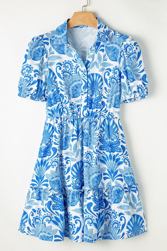 Floral Print Drawstring Waist Ruffled Mini Dress
