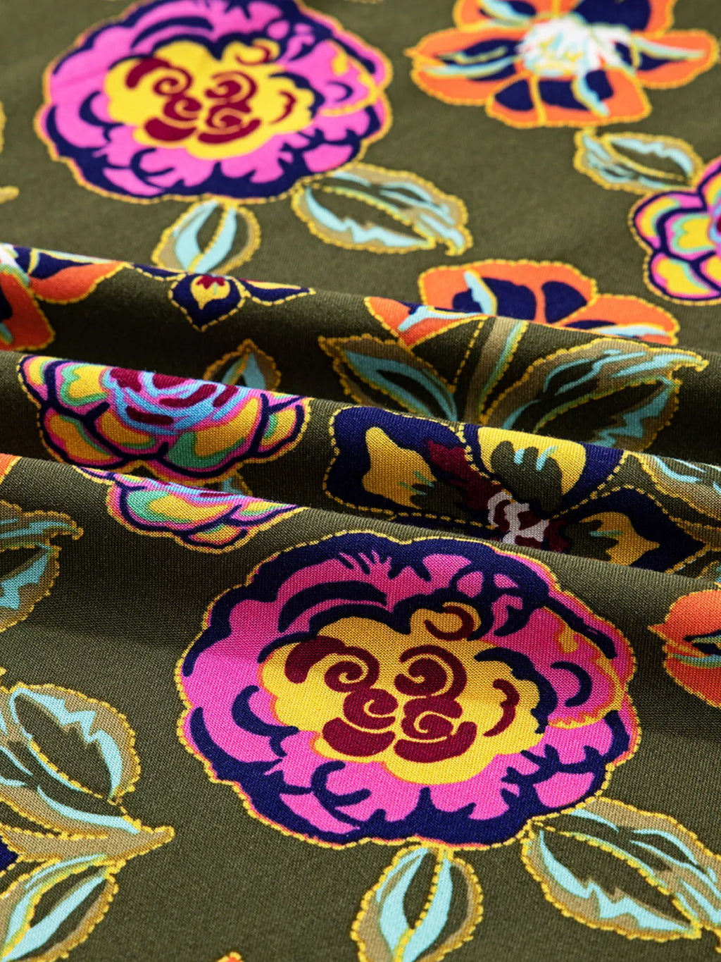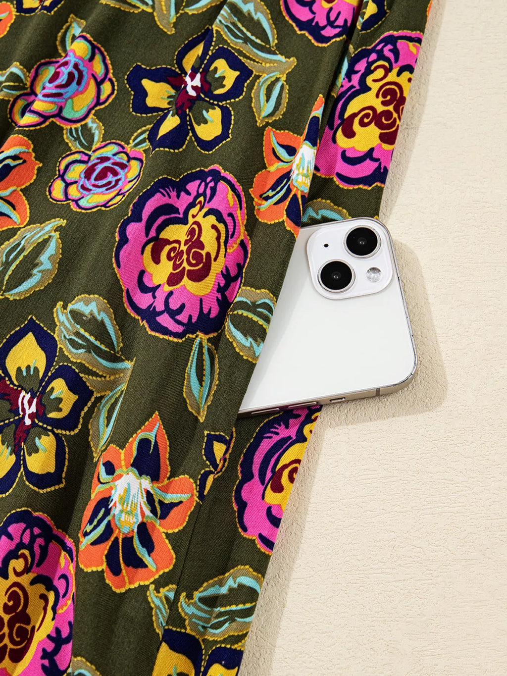 Floral Print Split Neck Bubble Sleeve Shift Mini Dress