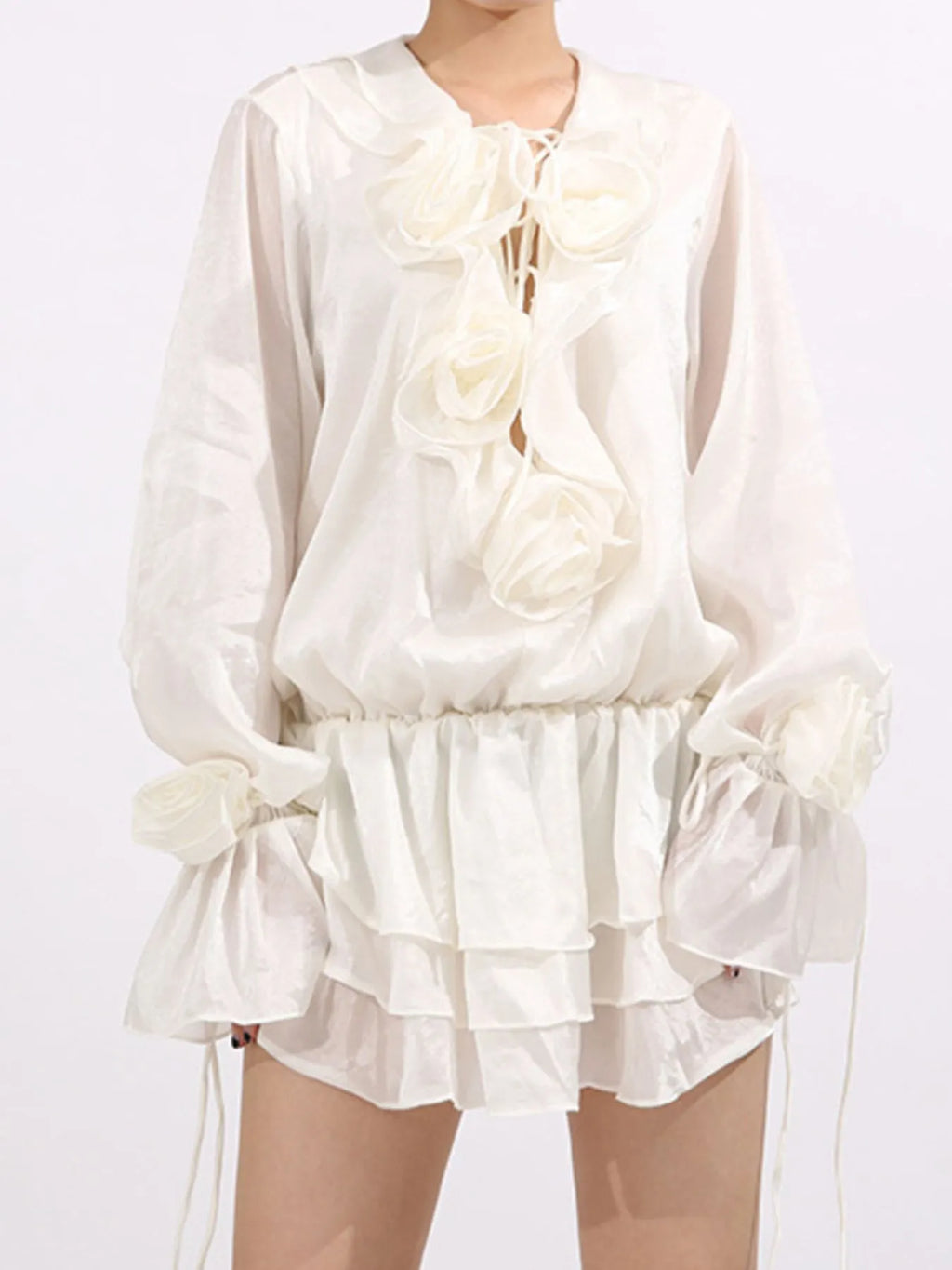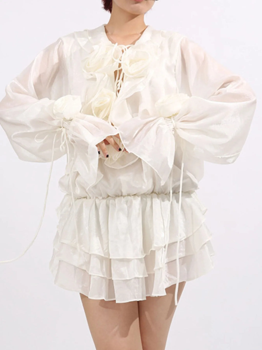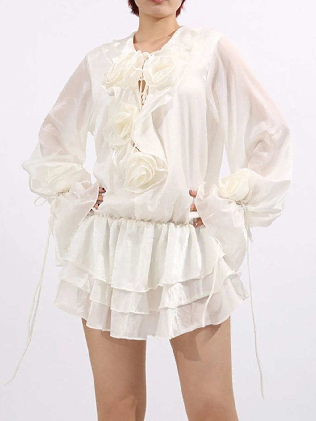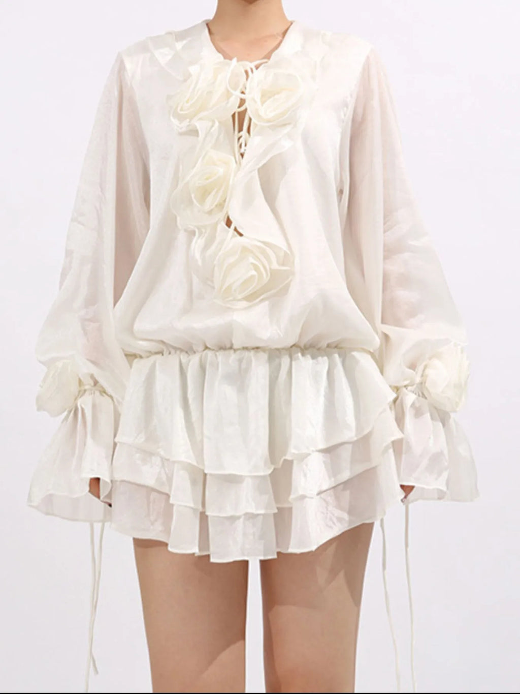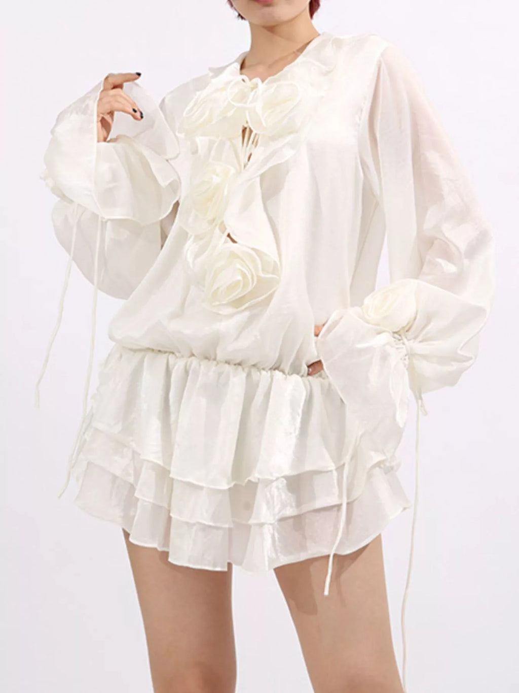 Flower Ruffled Long Sleeve Dress
