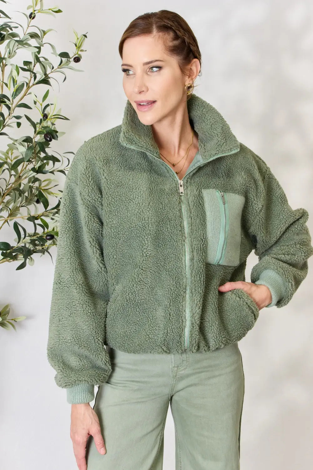 Heimish Full Size Zip Up Collared Neck Jacket