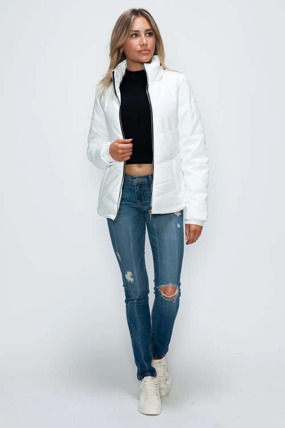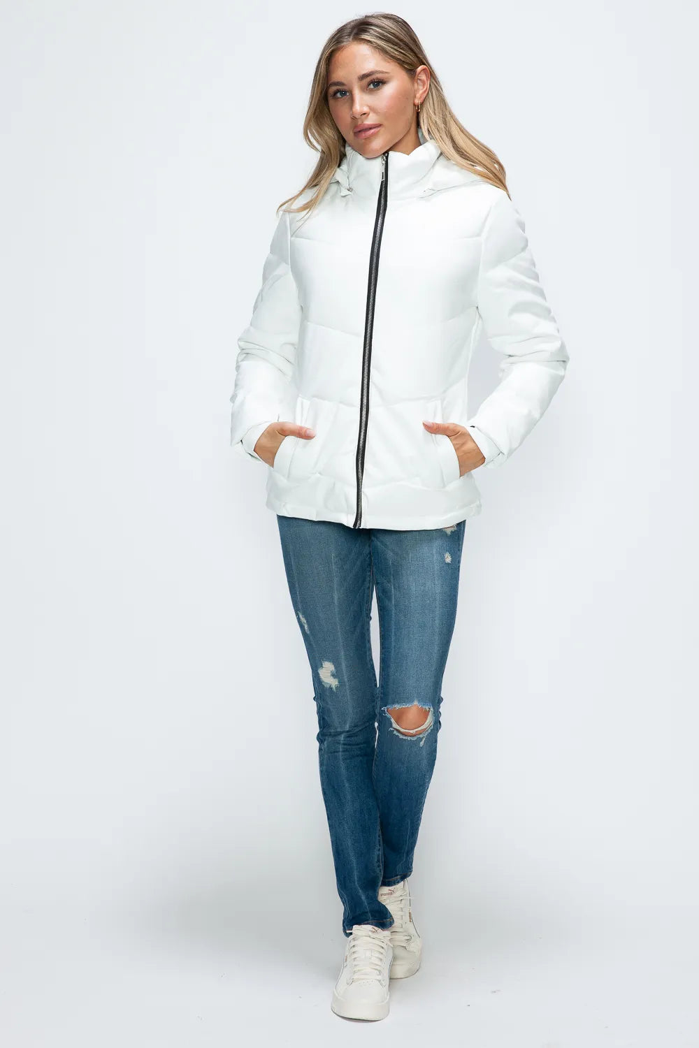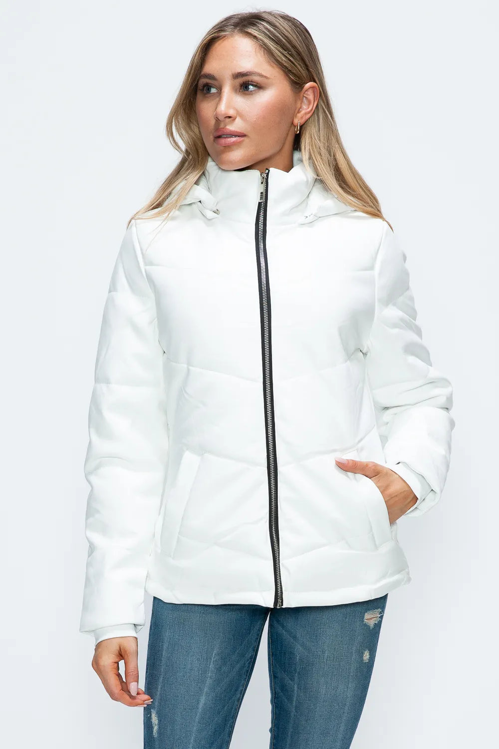 How Dare U Pocketed Zip Up Puffer Jacket with Removable Hood