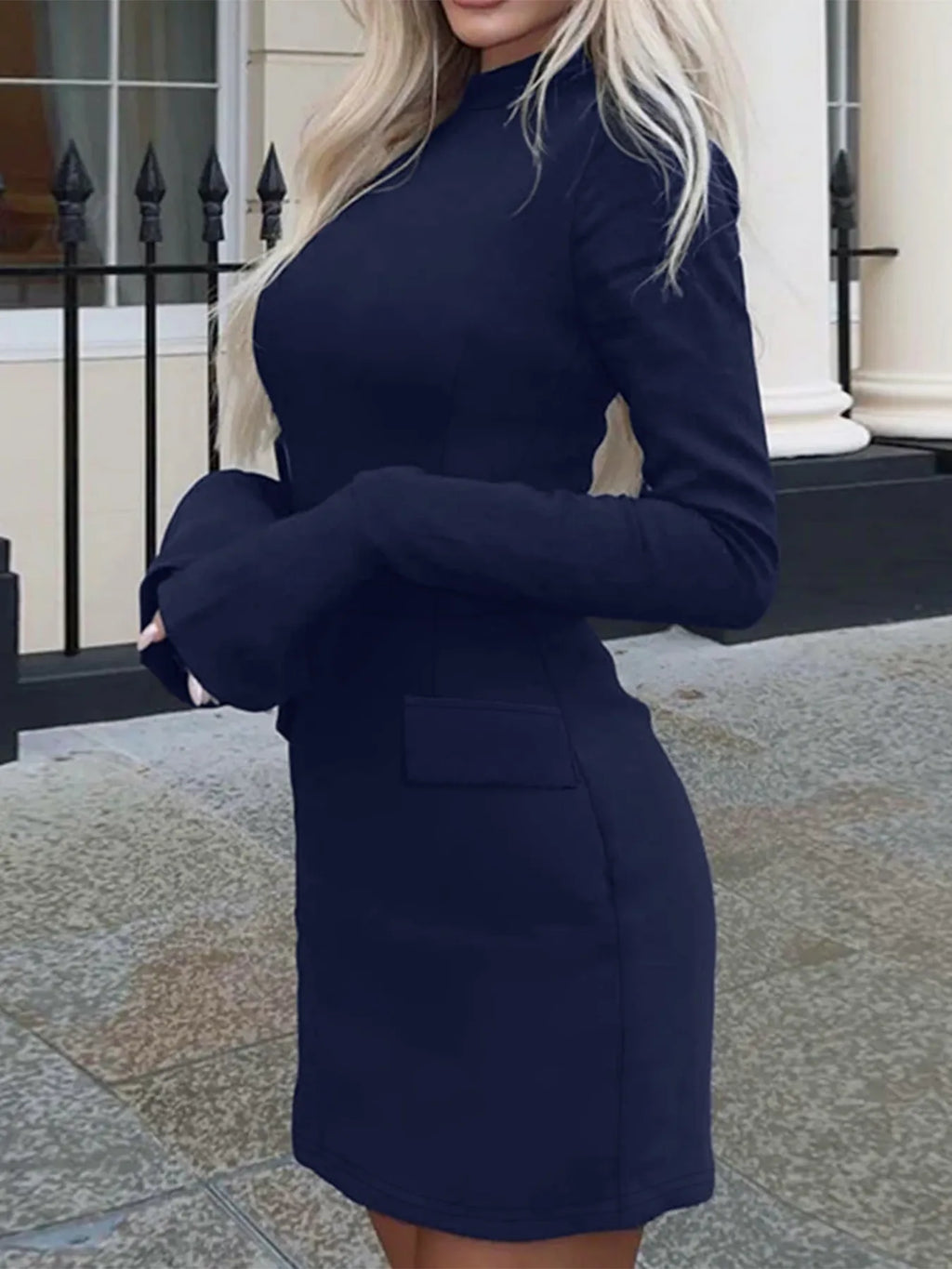 Long Sleeve Bodycon Mini Dress with Pockets