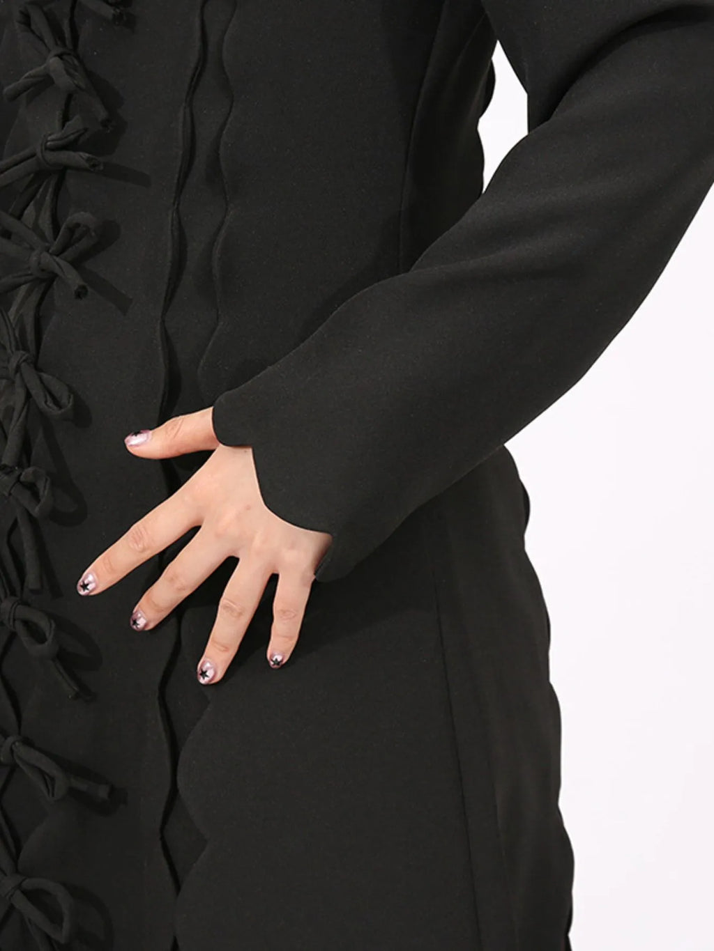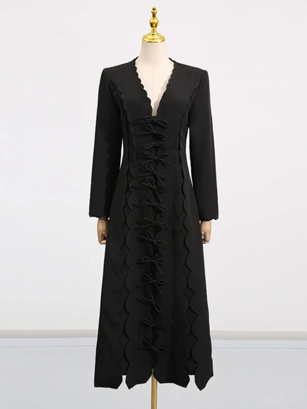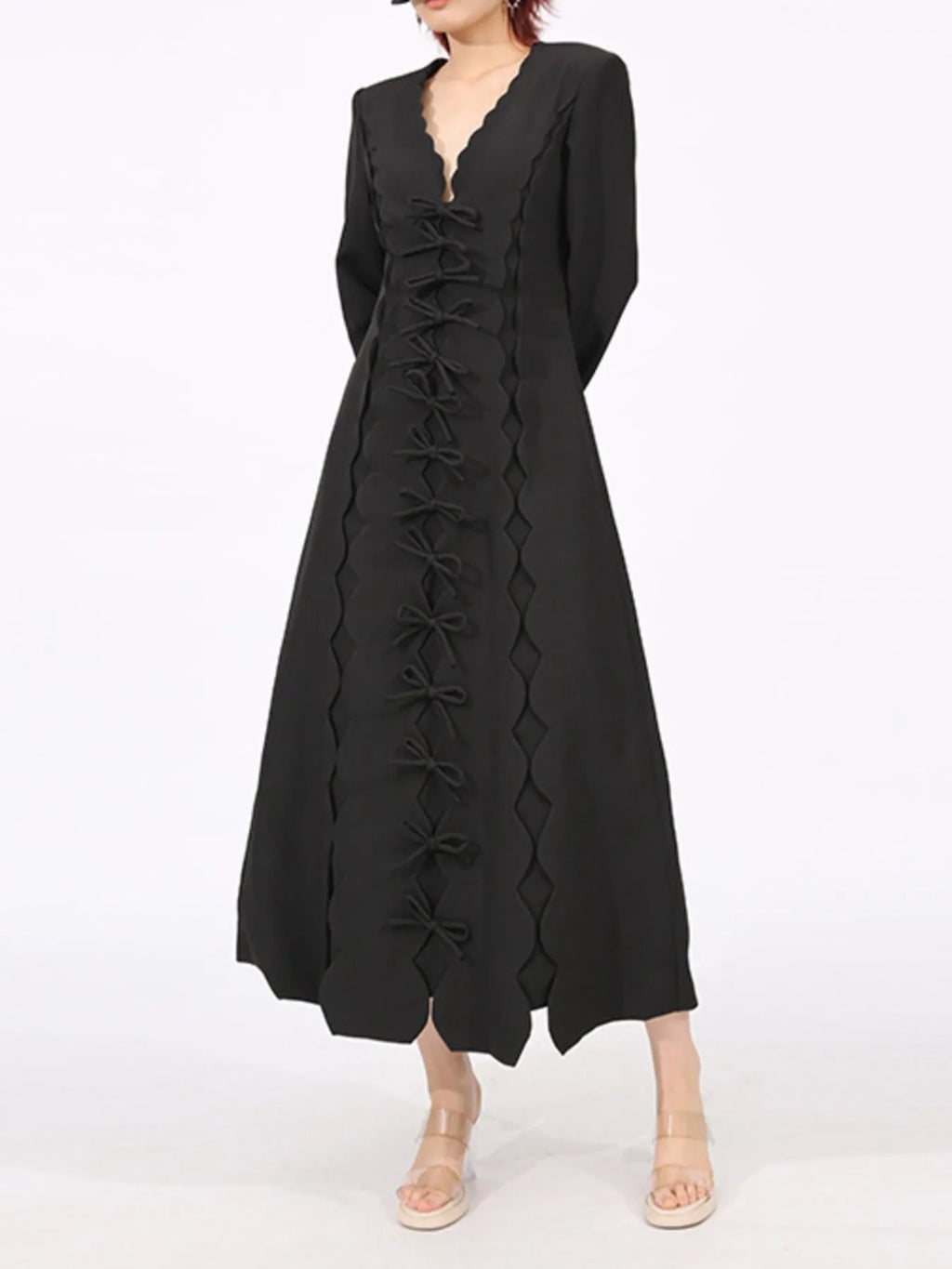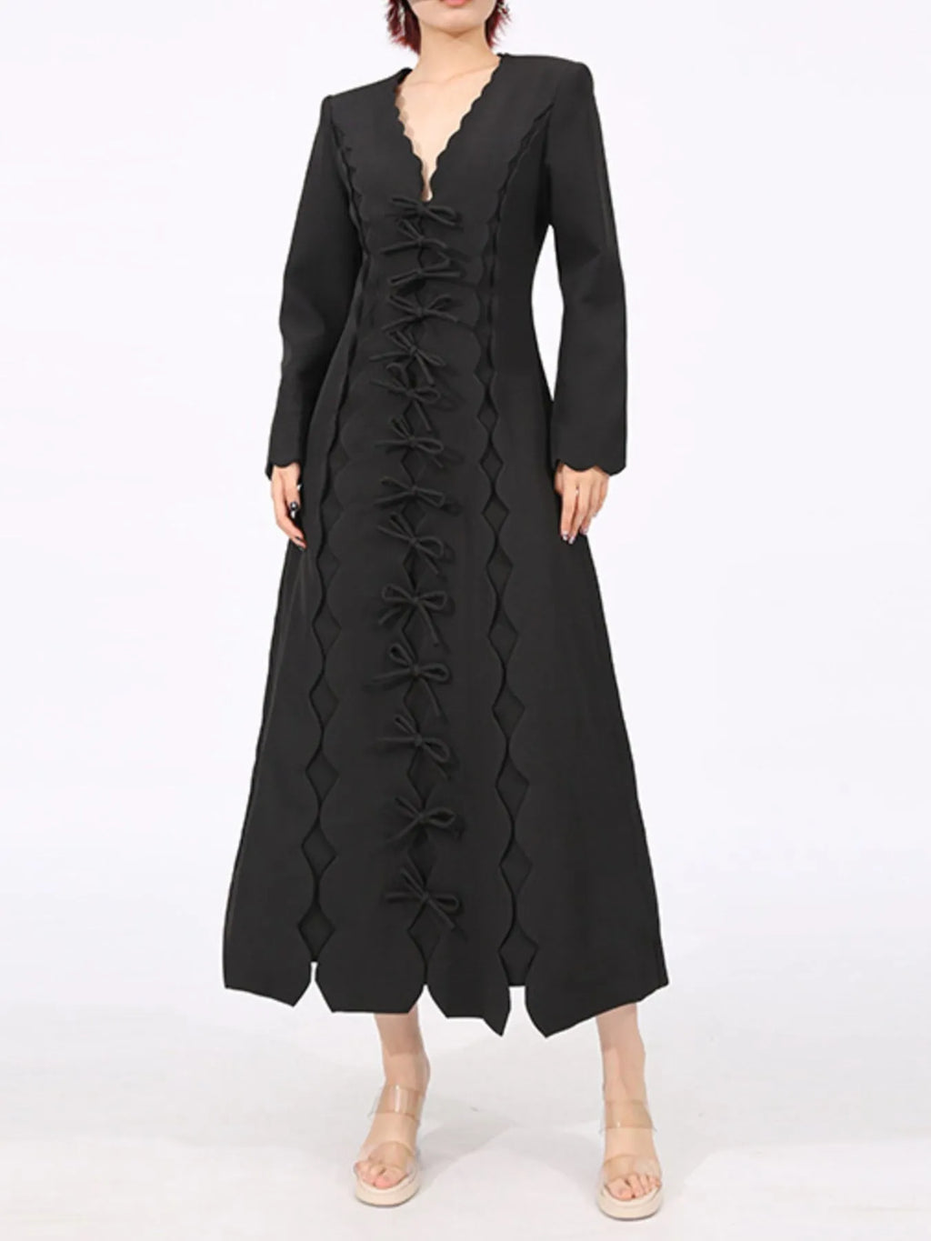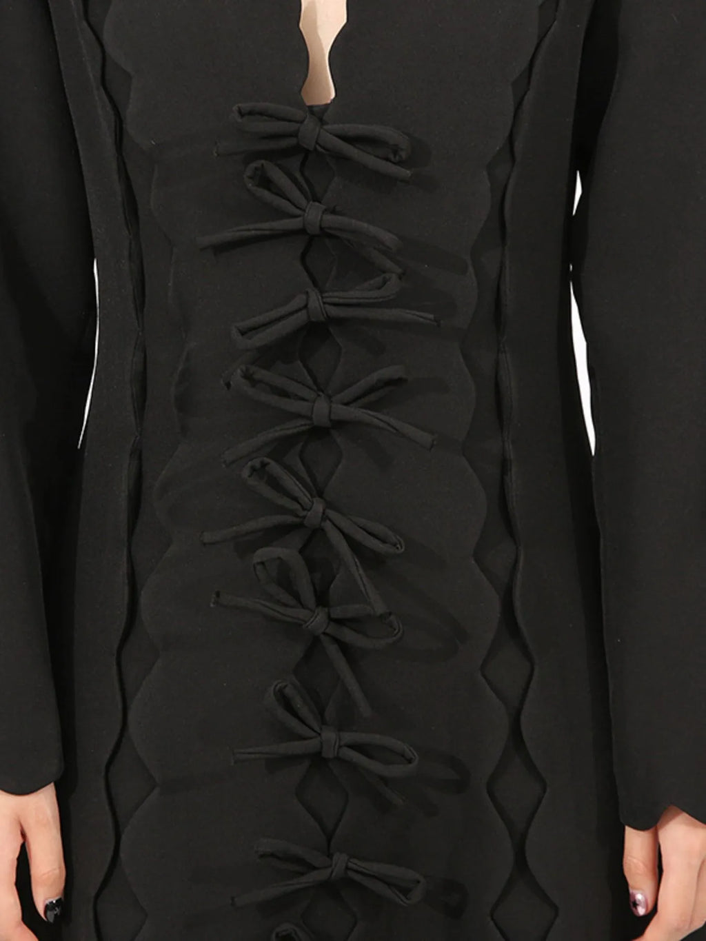 Long Sleeve Bow Front Midi Dress