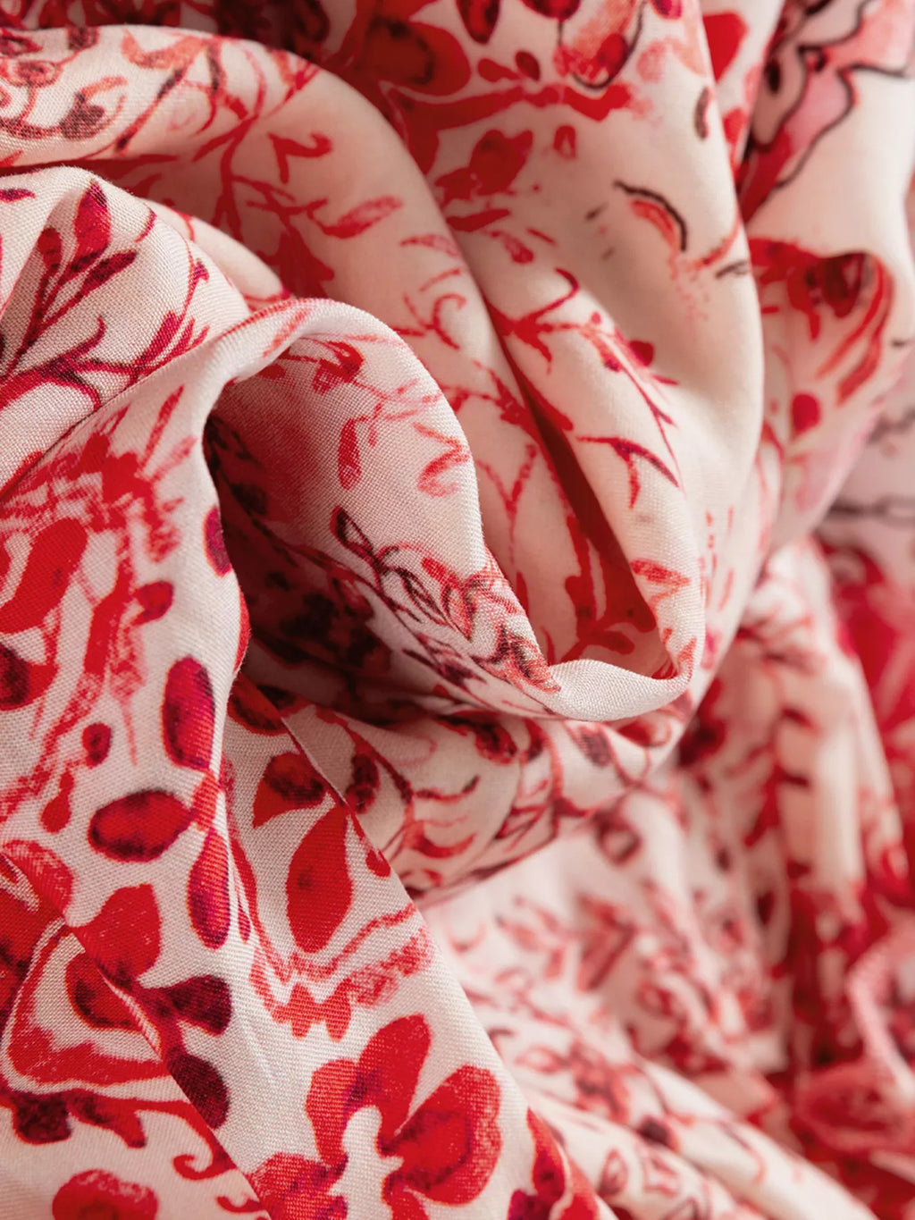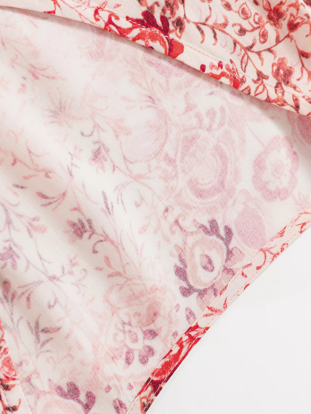loral Print Tassel Tie Long Sleeve Flowy Mini Dress
