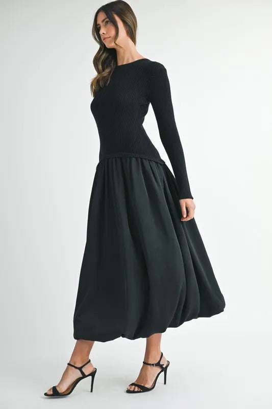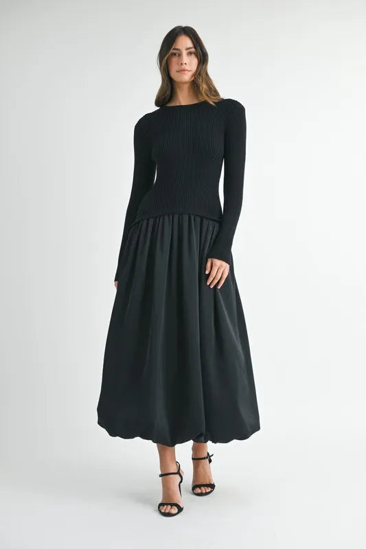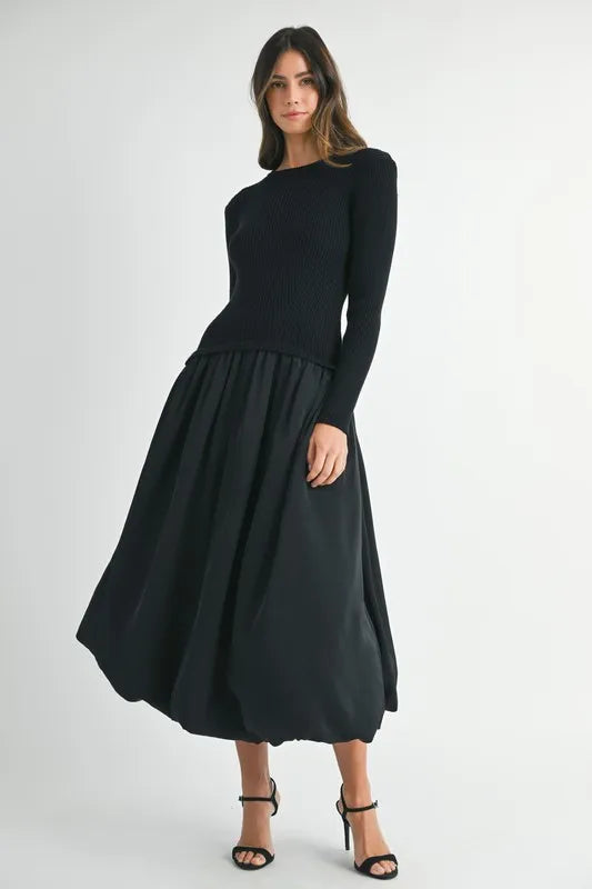 MABLE Ribbed Poplin Mix Midi Sweater Dress