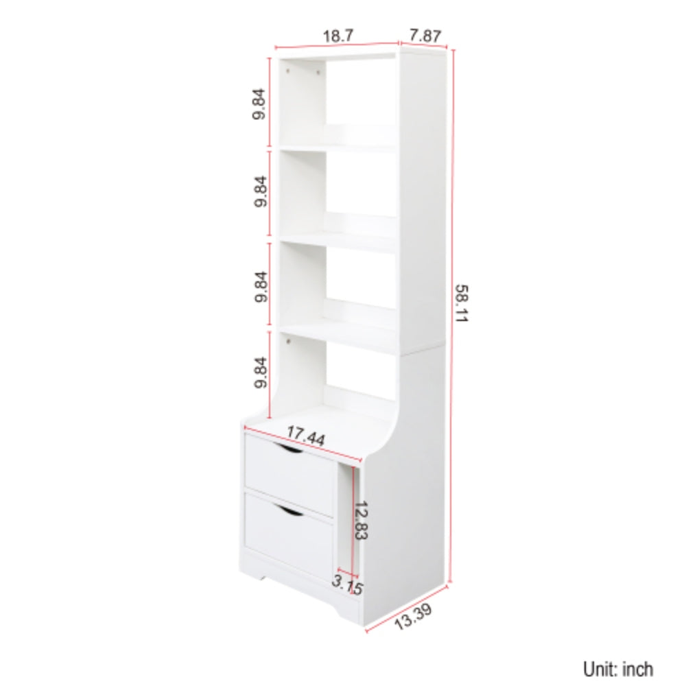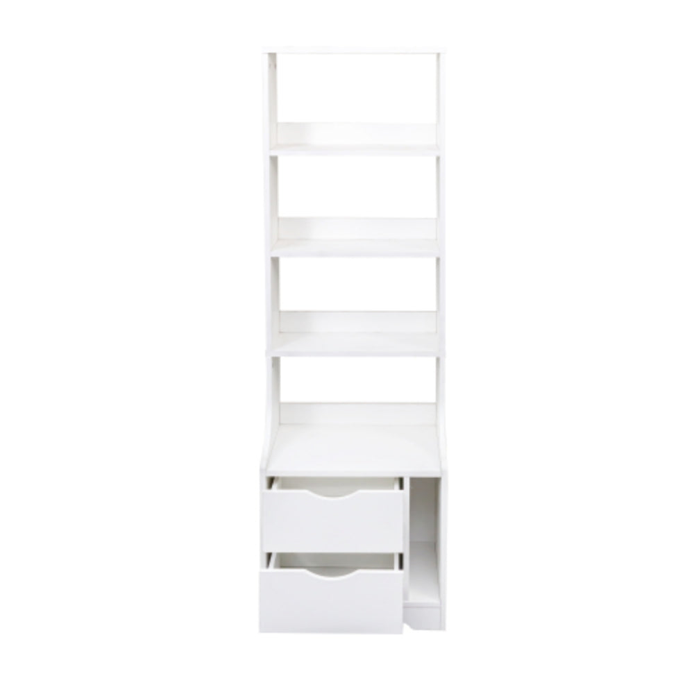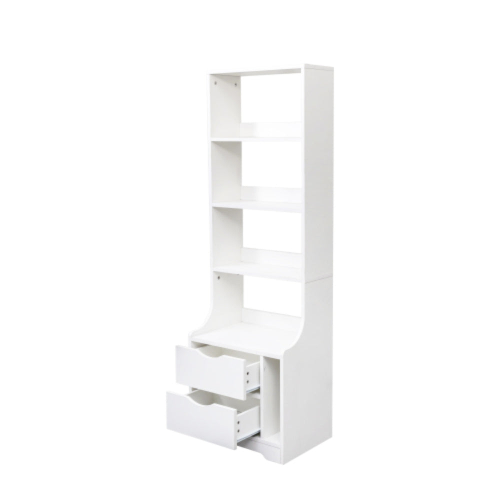 It features a top surface, closed cabinets, and 4 open shelves, perfect for storing books, decorations, or other essentials. The drawers help keep smaller items out of sight.