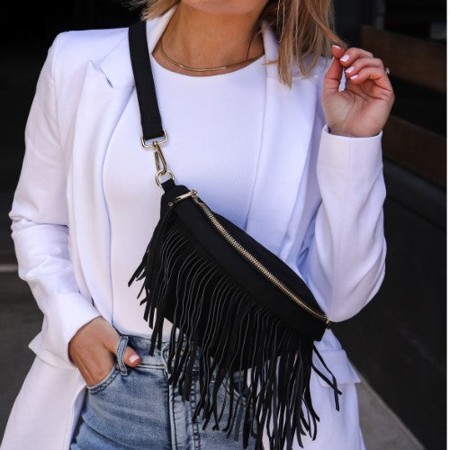 Enjoy the luxury of going hands-free and stylish with this Removable and detachable Fringe Hip bag.