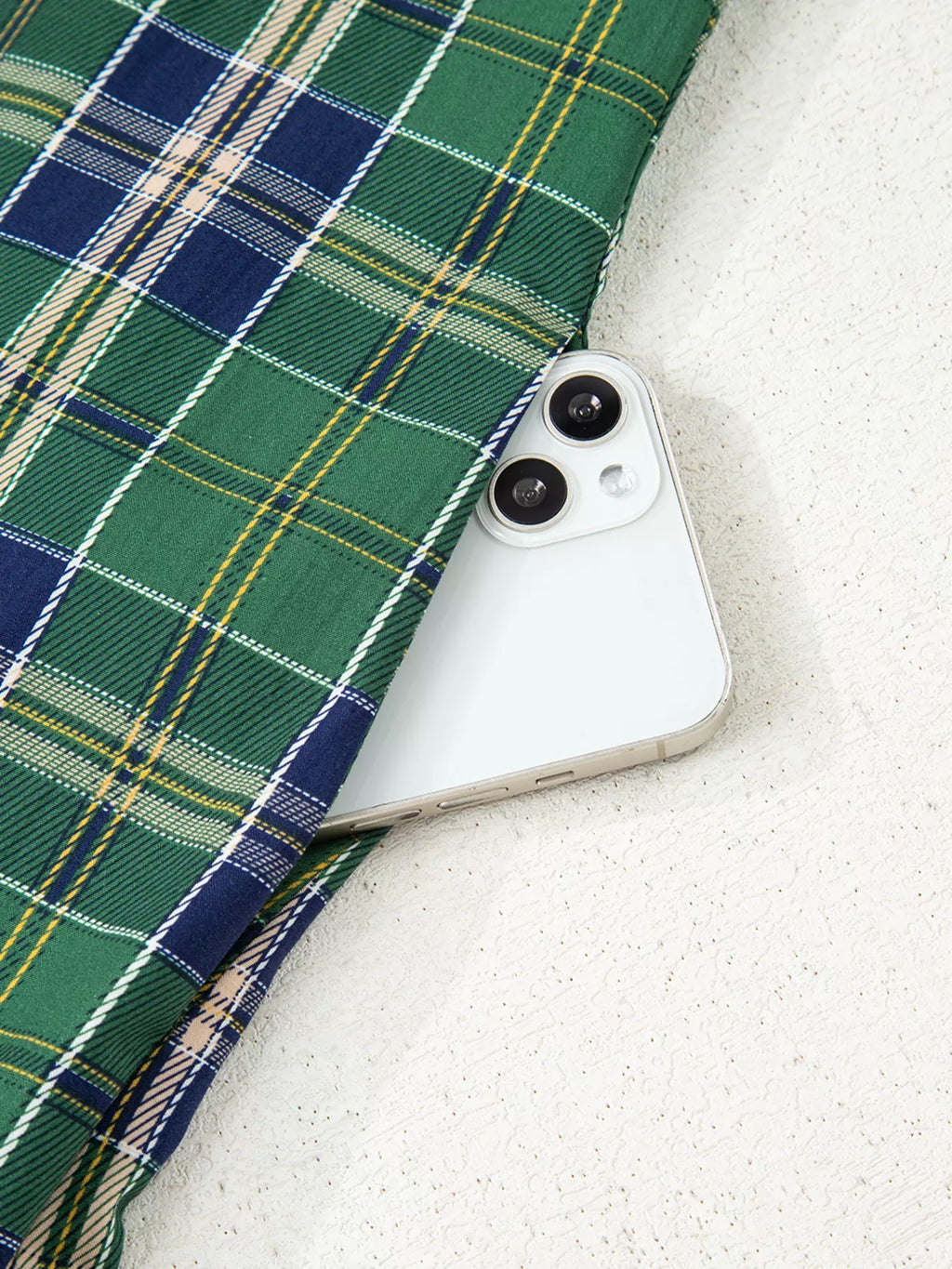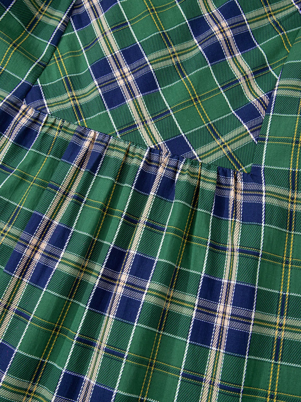 Plaid Frilly Collar Long Sleeve Shift Mini Dress