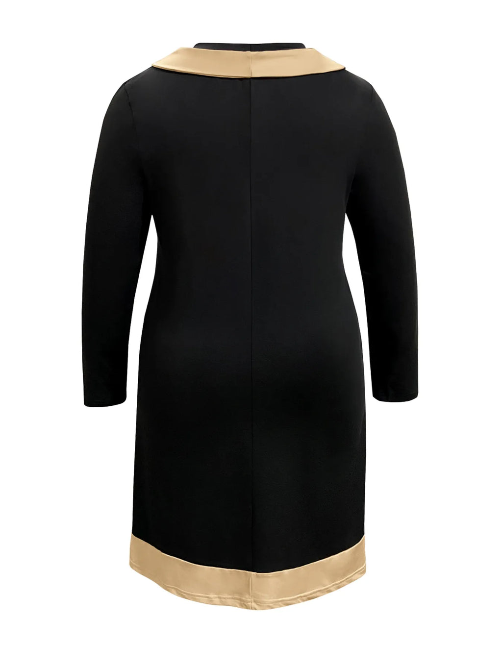 Plus Size Contrast Trim Drawstring Long Sleeve Mini Dress