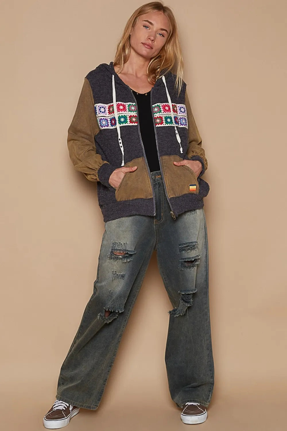 The Contrast Square Patch Pattern Hooded Zipper Jacket is a trendy and stylish outerwear piece that combines fashion and functionality. Featuring a unique square patch pattern, this jacket adds a modern and edgy touch to your look. The contrasting colors create a bold and eye-catching aesthetic that sets this jacket apart. Equipped with a hood and zipper closure, it offers both style and practicality for unpredictable weather. Whether you're running errands or going for a casual outing, this jacket is a versatile and fashionable choice. Pair it with jeans and sneakers for a sporty-chic vibe, or layer it over a dress for a more urban-cool look. Stay on-trend and cozy with this statement jacket that is sure to elevate your outfit effortlessly.