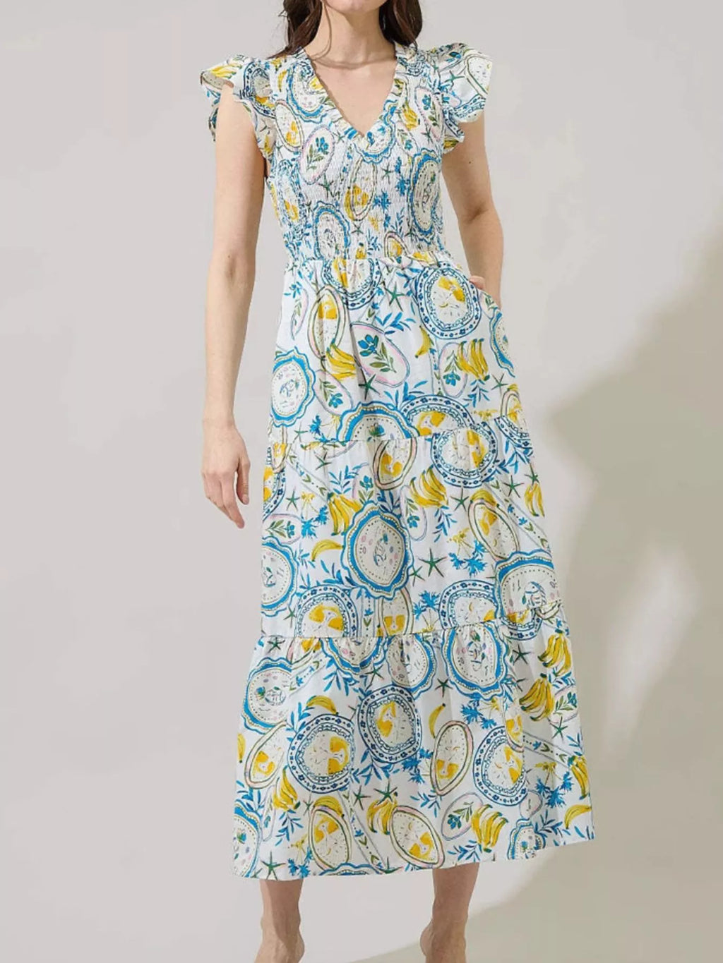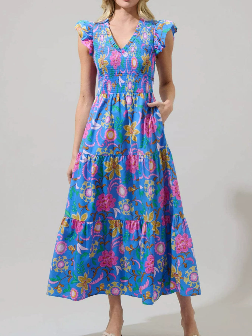 Ruffled V-Neck Tiered Midi Dress