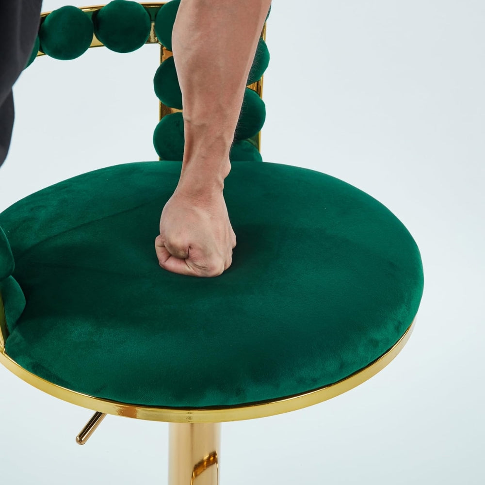 The Set of 2 Modern Green Bar Chairs with Gold Iron Legs provides a comfortable and supportive sitting experience, making them versatile enough for various settings, including use as office chairs.