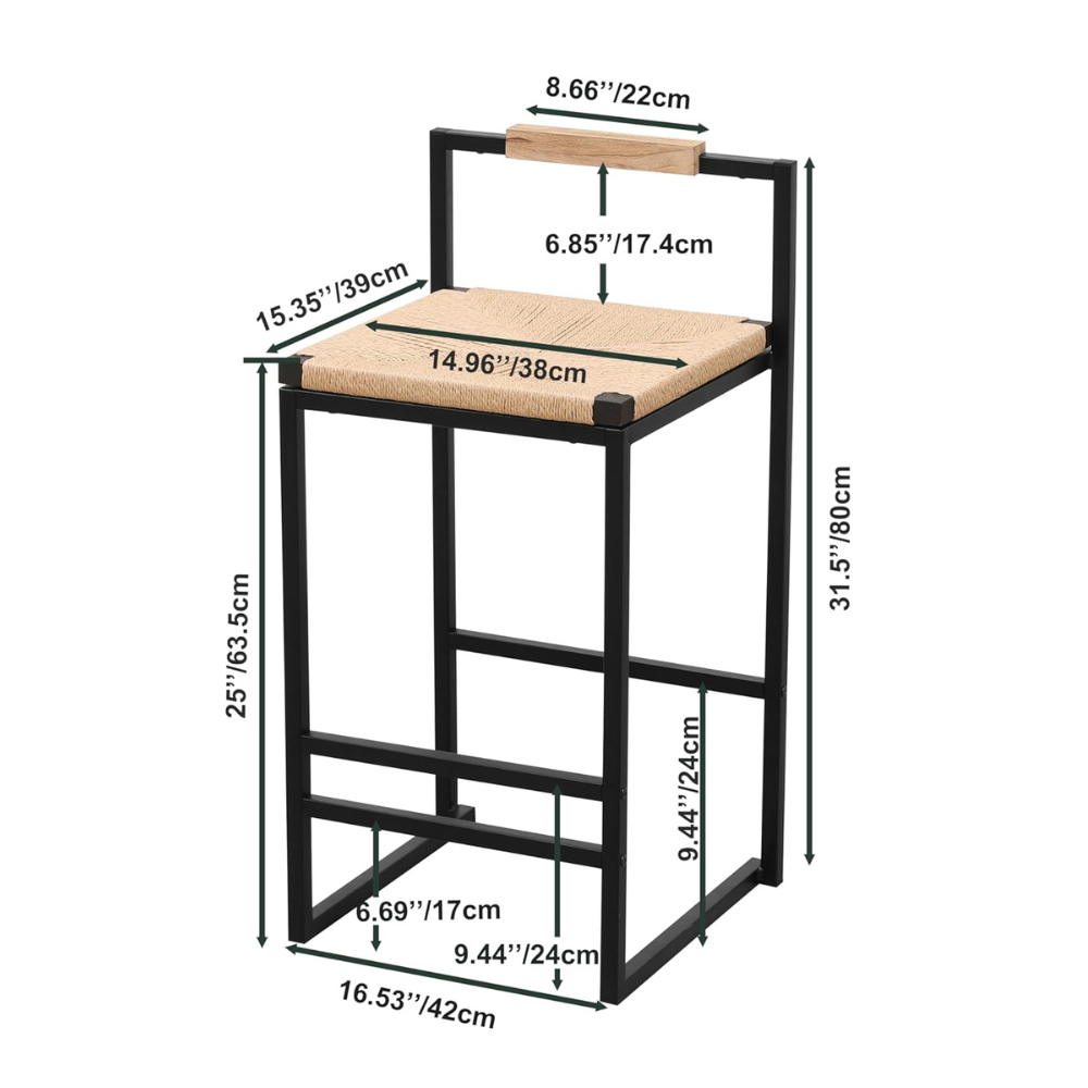 The wooden and low back design adds a touch of fashion to your space, while the paper rope handwoven seat ensures breathability and comfort. With a sturdy footrest and thicken metal frame, these stools are also equipped with adjustable pads for added stability.