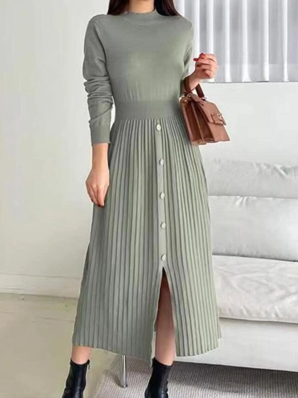 Slit Front Mock Neck Long Sleeve Knit Dress