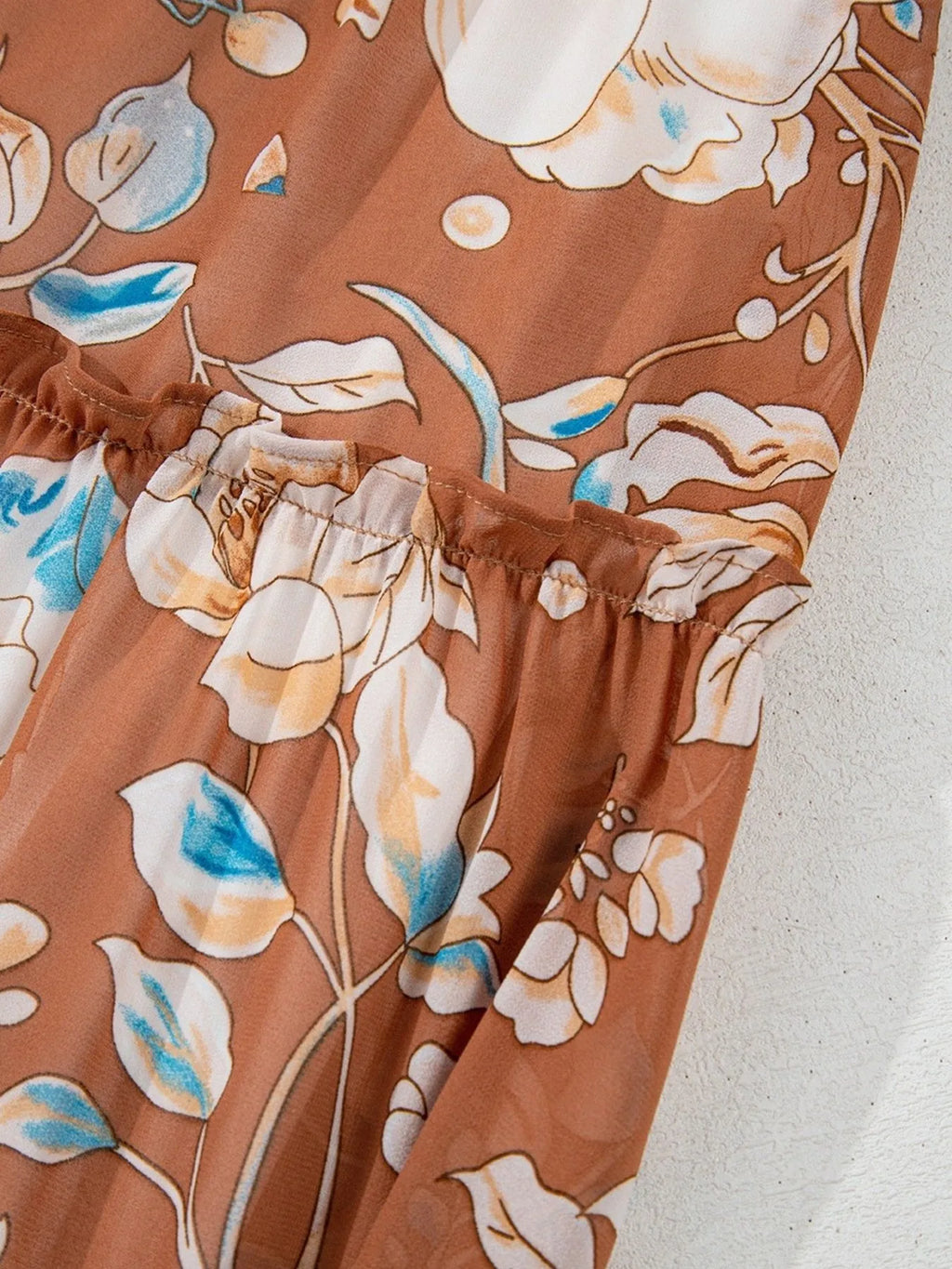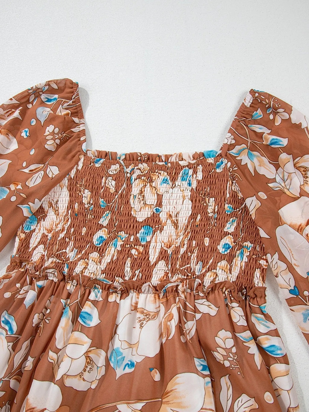 Smocked Printed Long Sleeve Tiered Dress