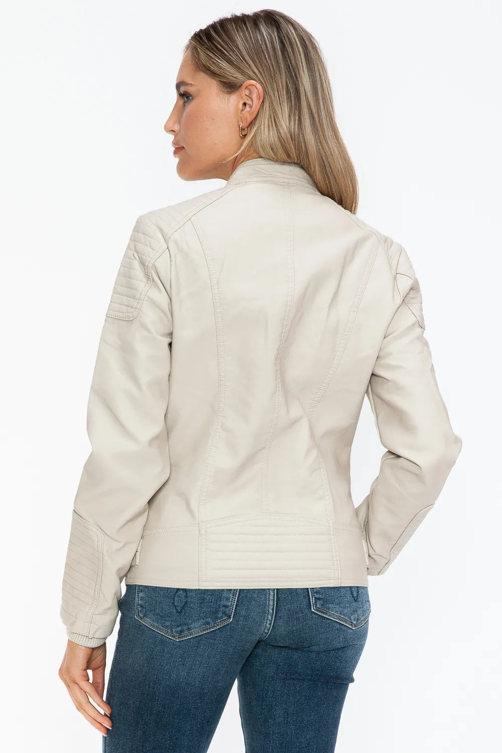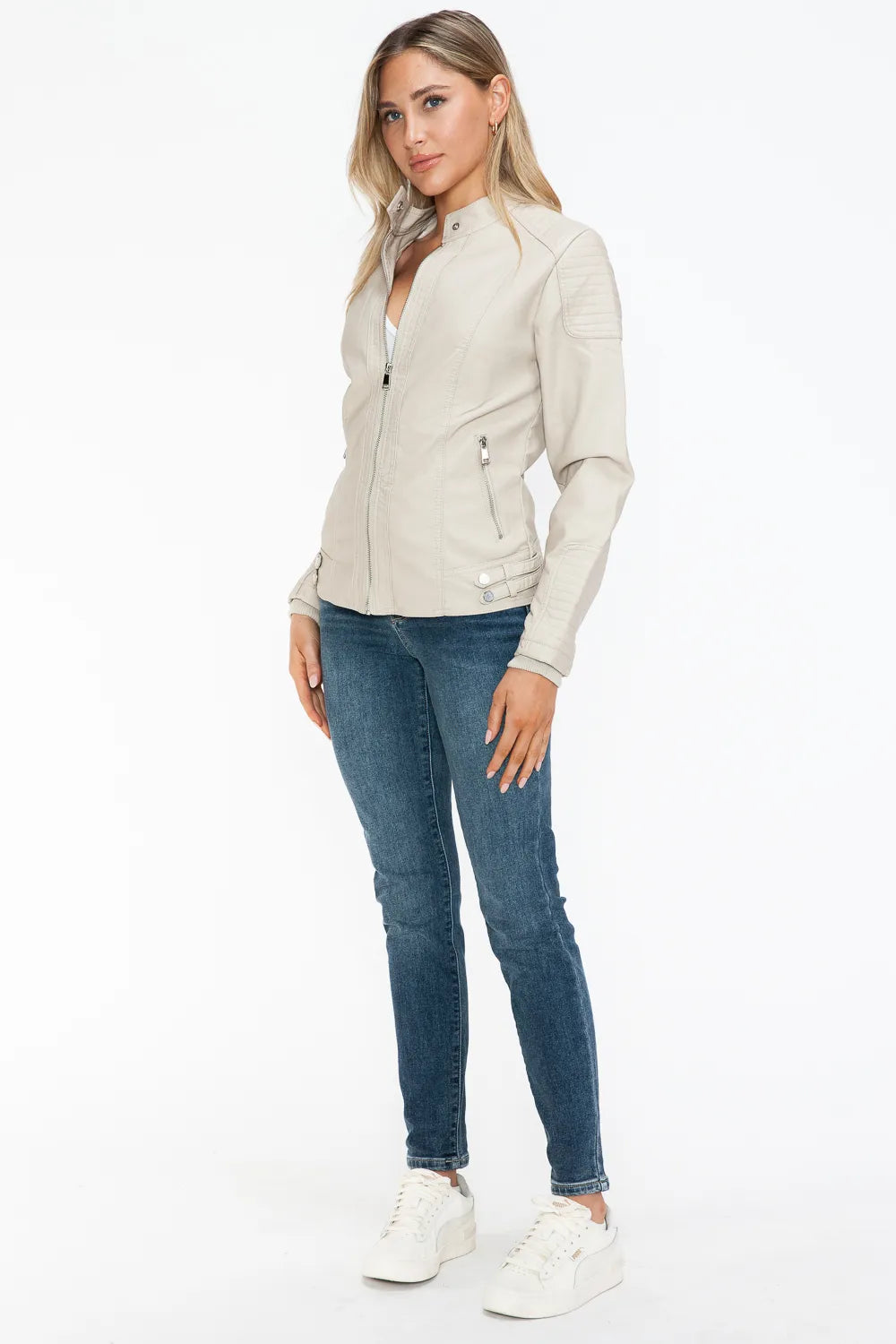 Snobbish Faux Leather Biker Jacket with Side Zip Pockets