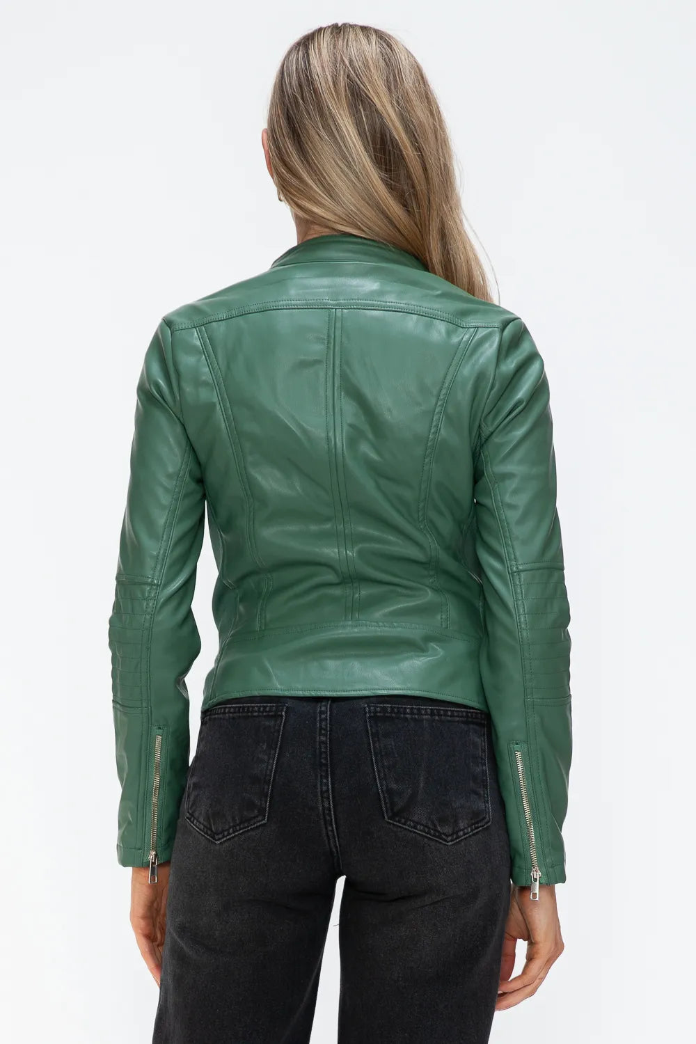 Snobbish Faux Leather Zip Up Drawstring Hooded Jacket