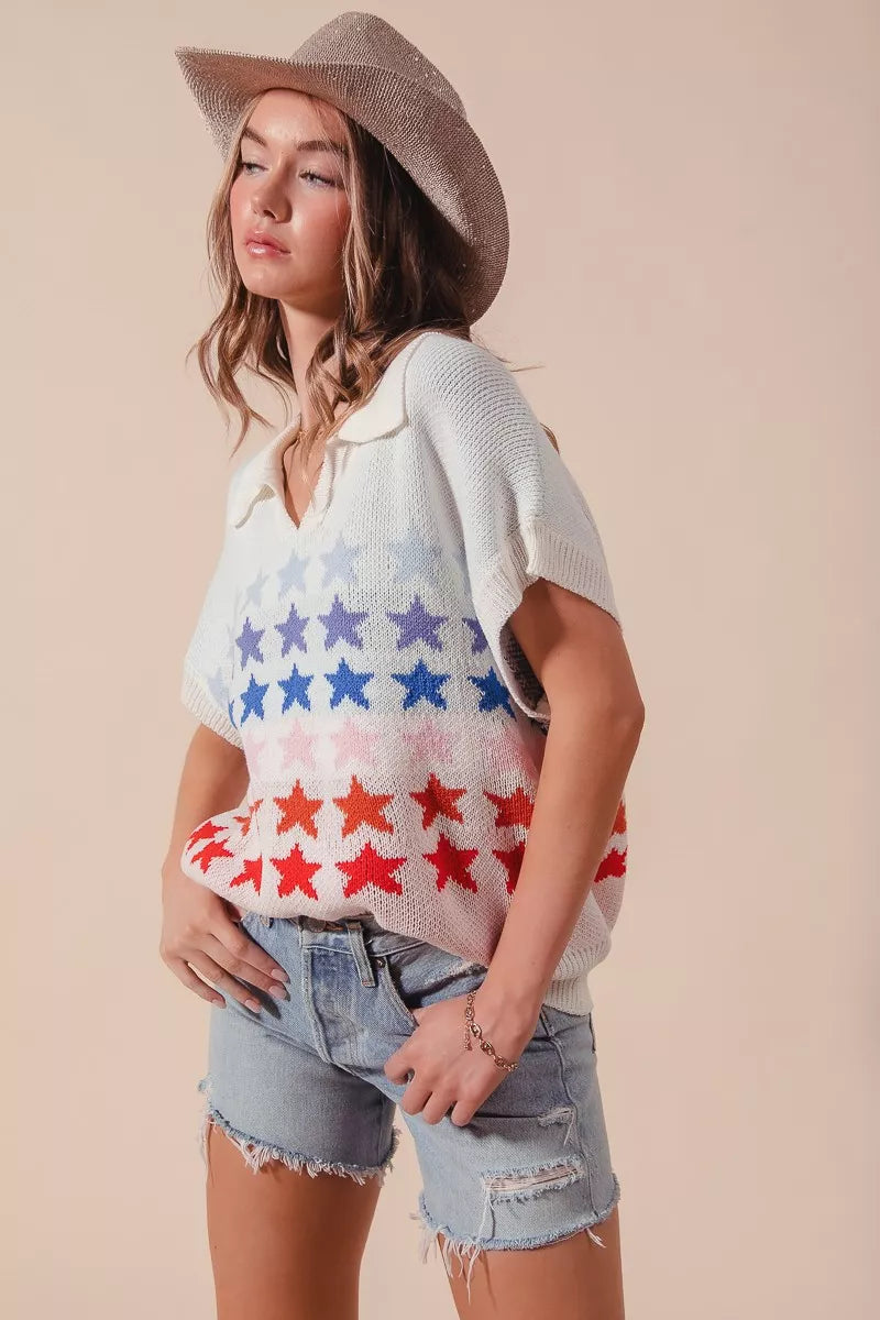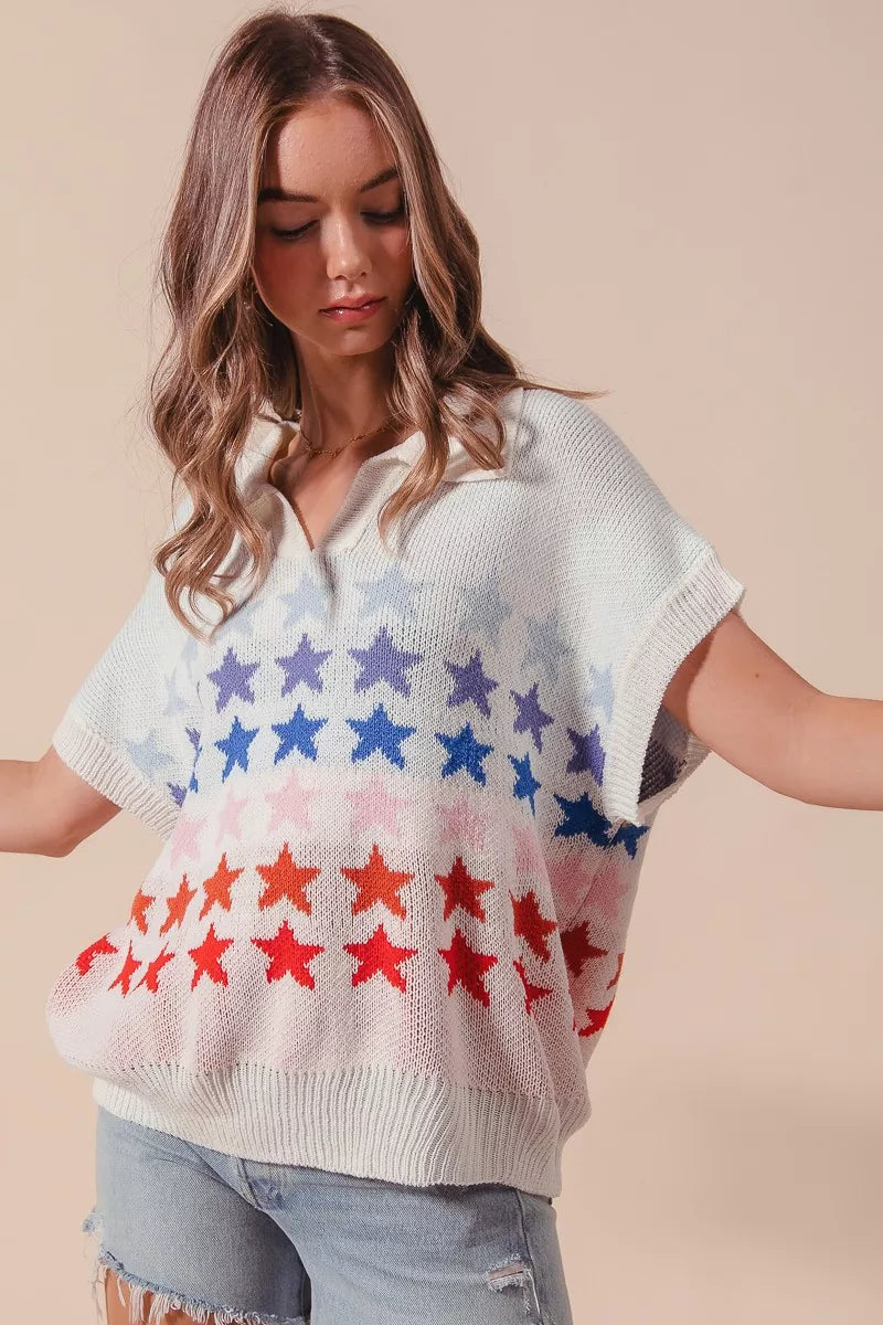 The Fourth of July Stars Loose Fit Knit Top is a patriotic and stylish choice for celebrating the holiday in style. The star print adds a touch of Americana flair to the top, perfect for Independence Day festivities. With a loose fit, this knit top offers a comfortable and relaxed silhouette that is easy to wear all day long. Whether paired with denim shorts for a casual look or dressed up with white pants for a more polished ensemble, this top is versatile and festive. Elevate your Fourth of July outfit with this trendy and spirited knit top that captures the essence of celebration.