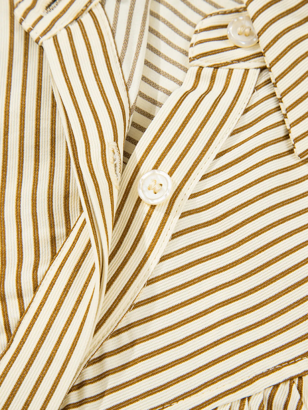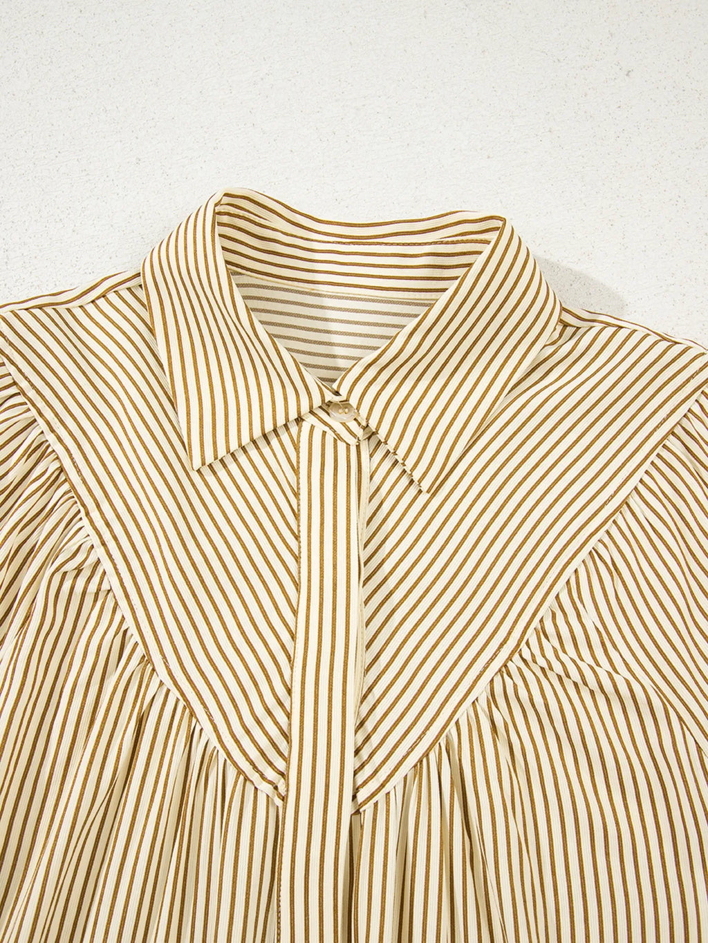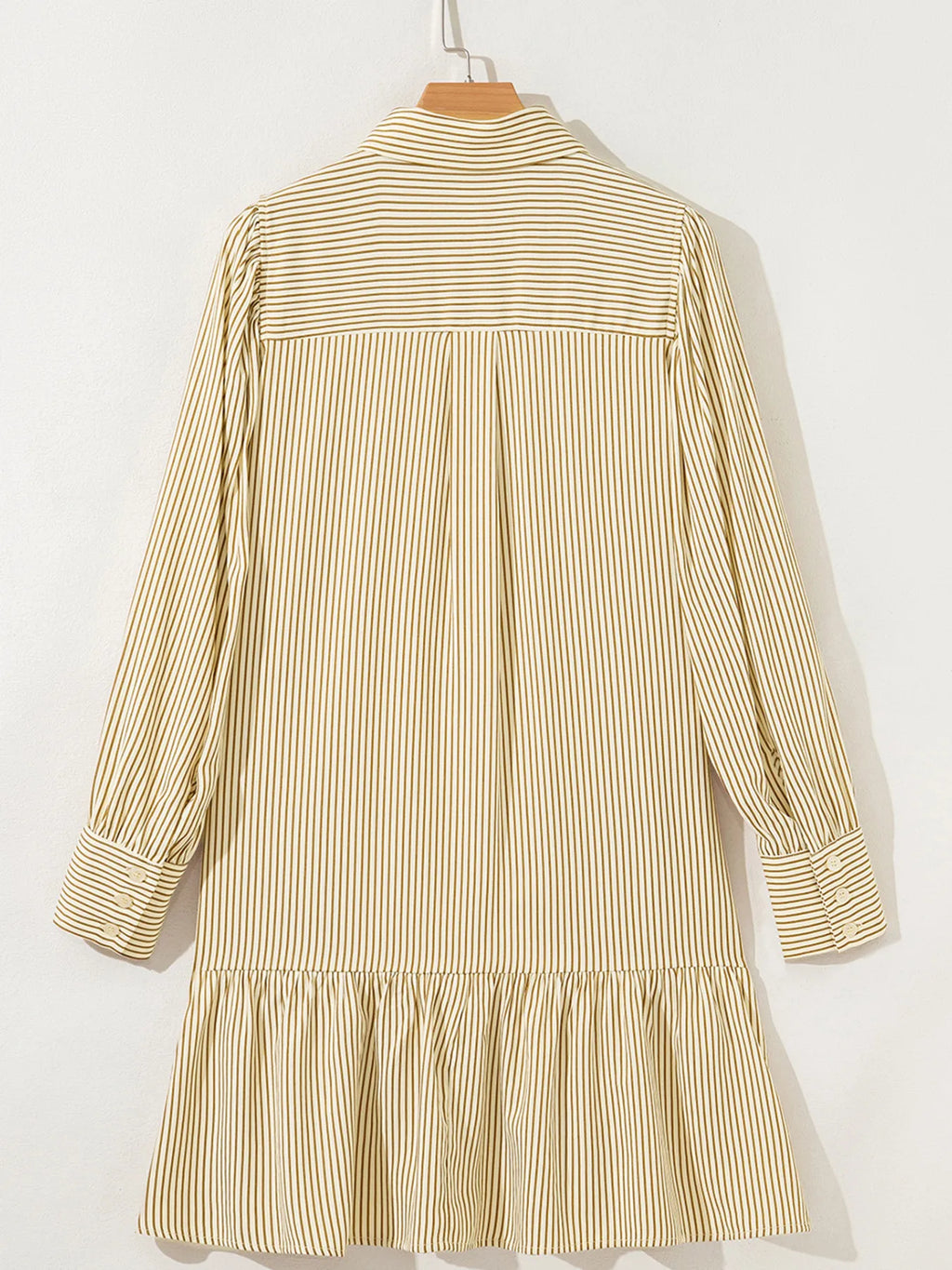 Stripe Collared Neck Cuffed Long Sleeve Drop Waist Mini Dress