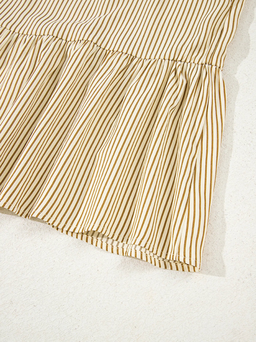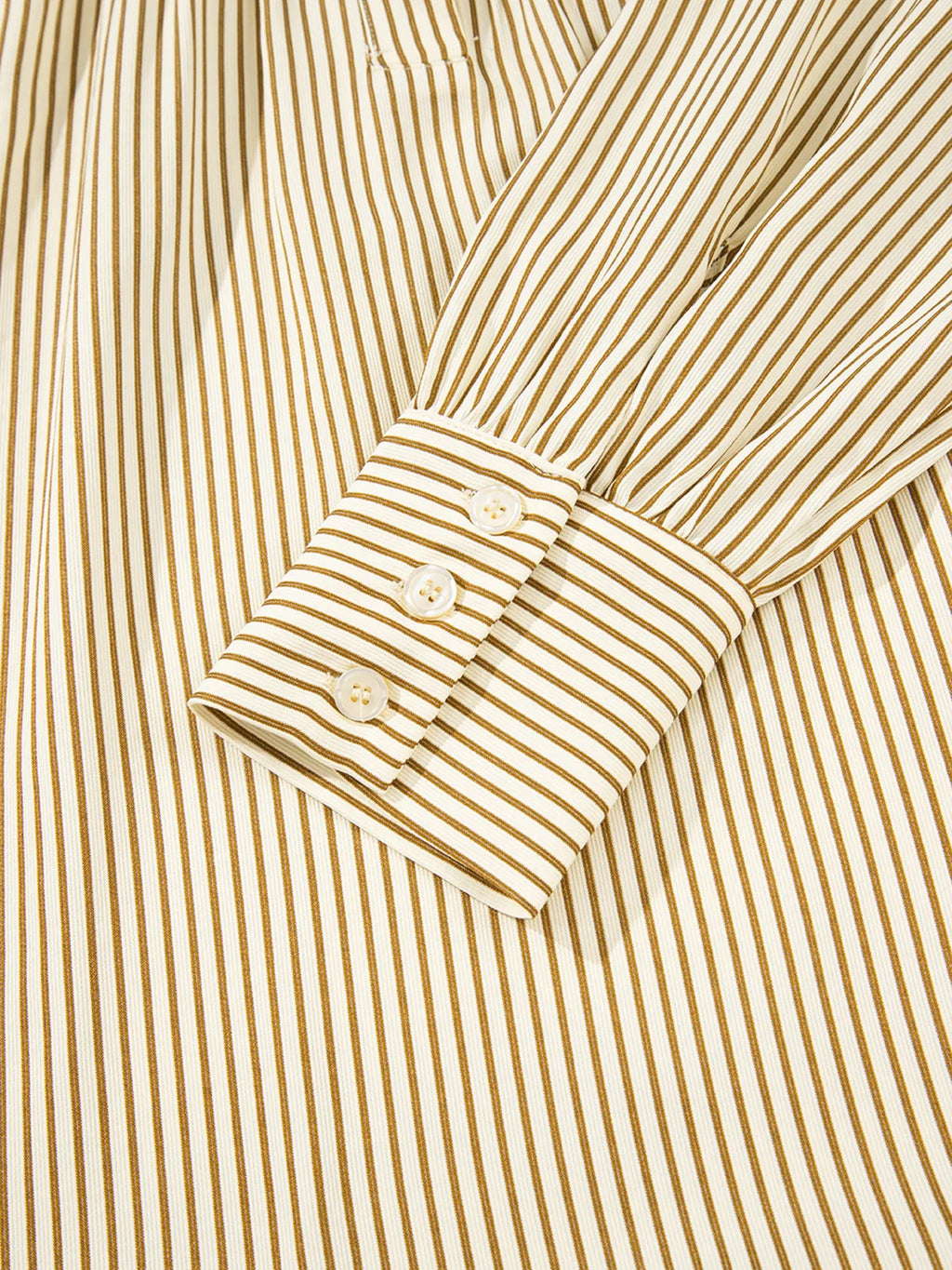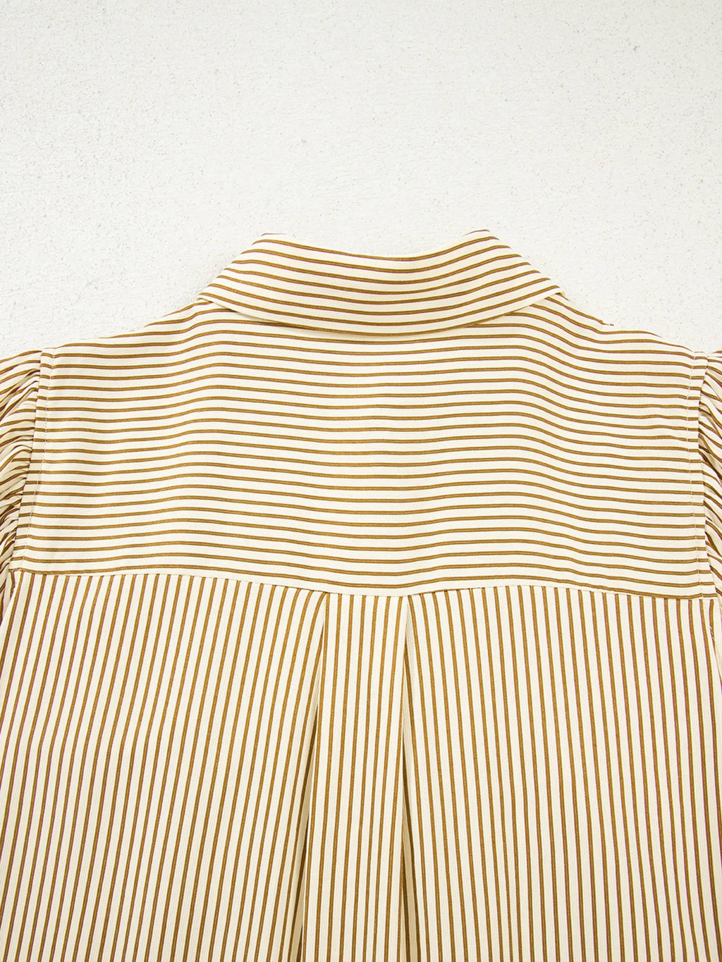 Stripe Collared Neck Cuffed Long Sleeve Drop Waist Mini Dress