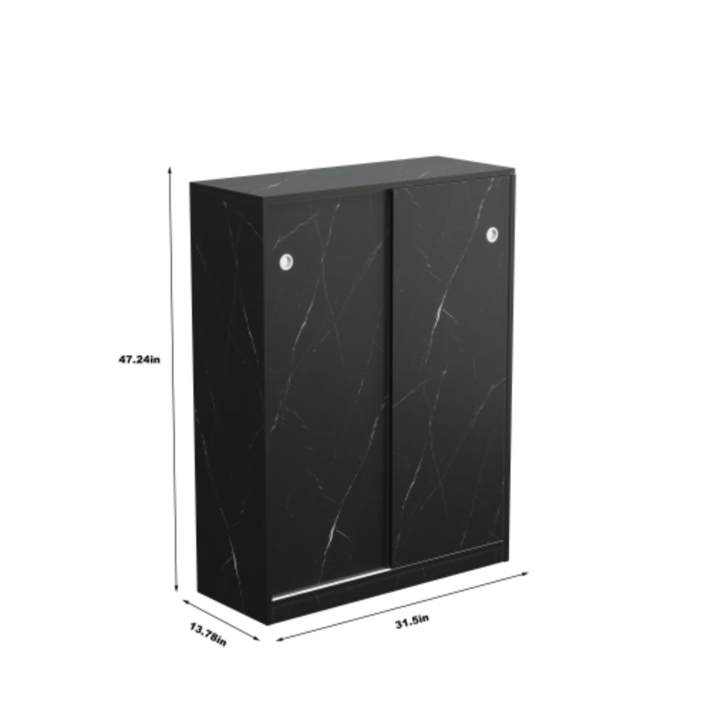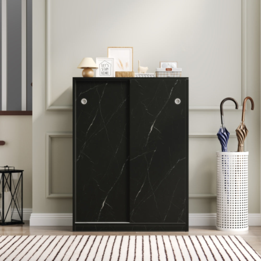 The Stylish Marble Black Shoe Cabinet with Sliding Door offers a sleek, modern design that suits any home style. Its sliding doors provide easy access while saving space, making it a convenient addition to any room.