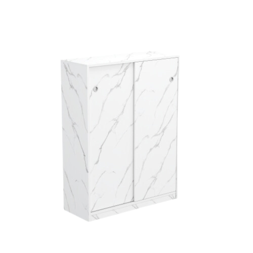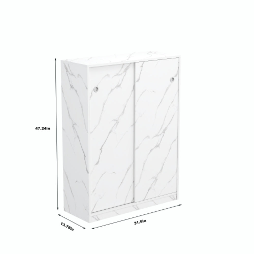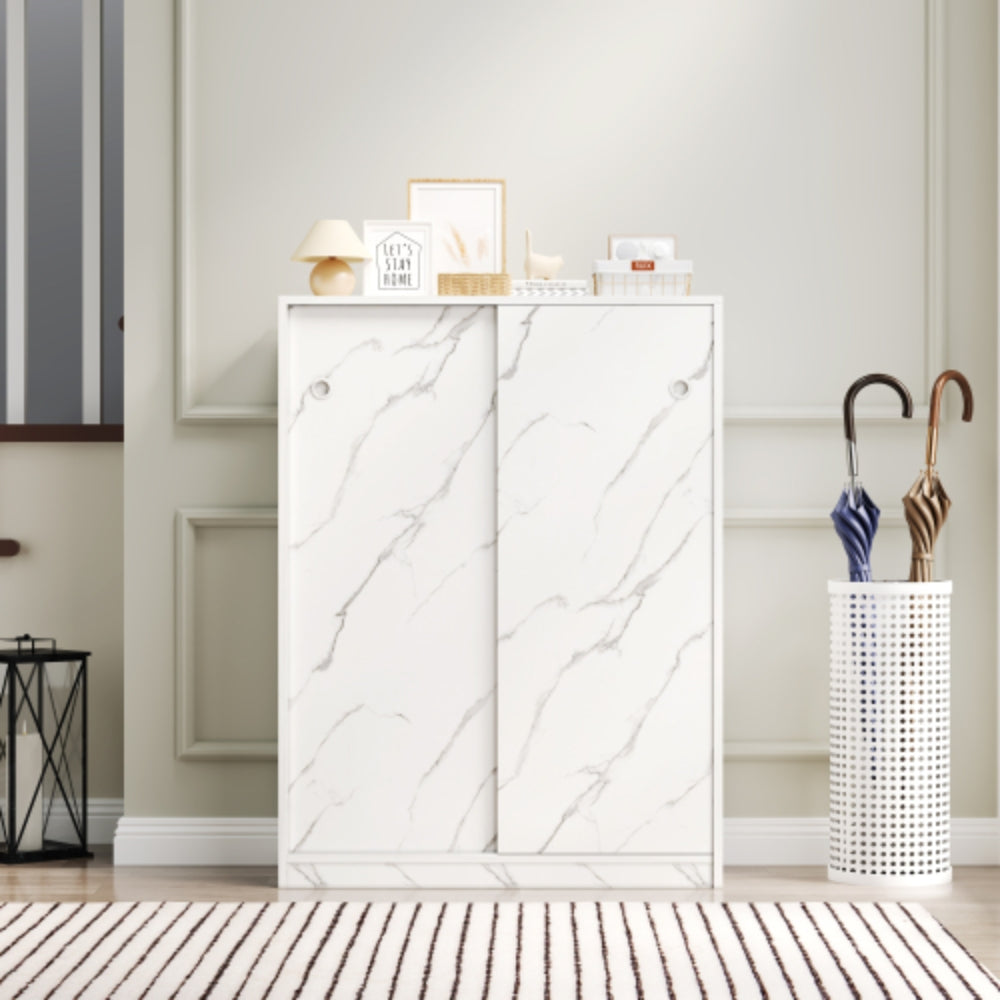 The Stylish Marble White Shoe Cabinet with Sliding Door offers a sleek, modern design that suits any home style. Its sliding doors provide easy access while saving space, making it a convenient addition to any room.