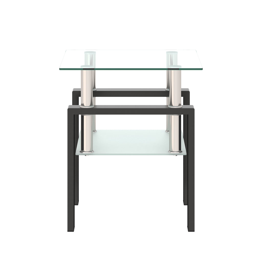 The Glass End Table is made with a combination of tempered glass and metal legs, ensuring durability and stability. The thick tempered glass top provides a chic and elegant look, while the thick frosted tempered glass bottom adds a touch of sophistication to any space.