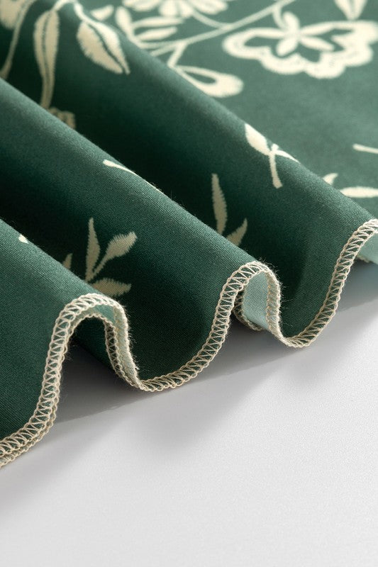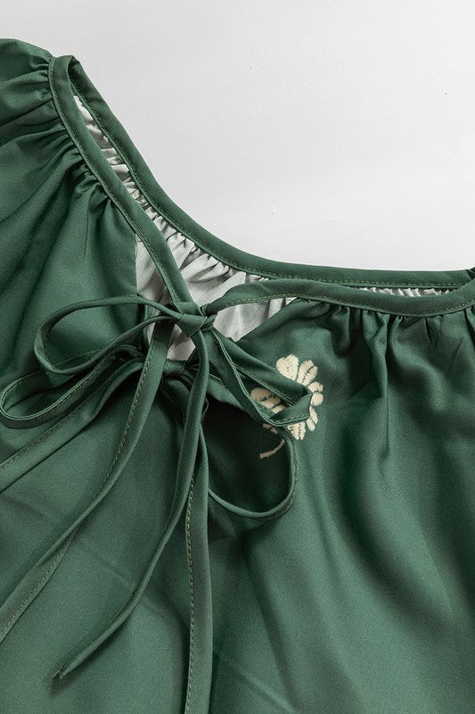 Tie Neck Boho Floral Puff Sleeve Shift Dress