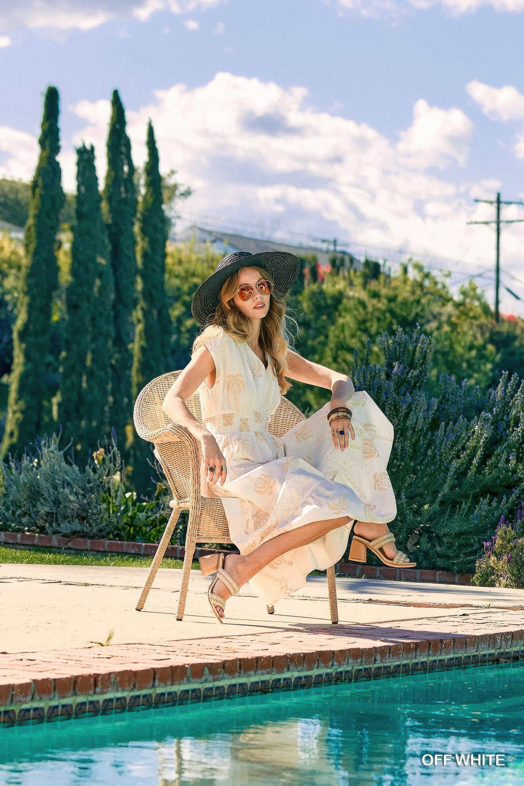 Breezy and beautiful, the Tropical Breeze Embroidered Midi Dress is your go-to piece for warm, sunny days. Featuring a vibrant tropical blue palm print, this dress is crafted from 100% cotton for a lightweight and breathable feel. The relaxed midi length offers an easy silhouette, while the smocked waist defines the shape without sacrificing comfort. A collared V-neckline and cap sleeves add a polished finish, making it effortlessly wearable from daytime outings to vacation evenings. Unlined for an airy, natural drape, it's a summer essential with a touch of charm.