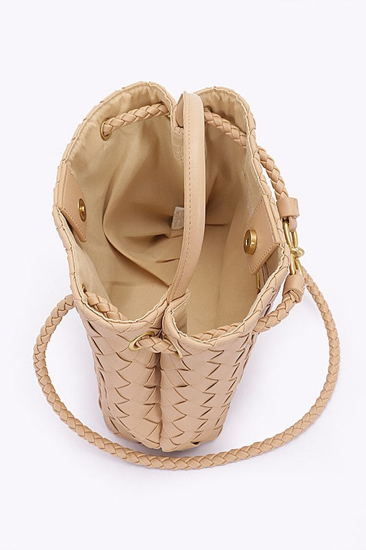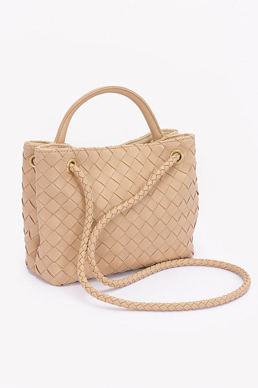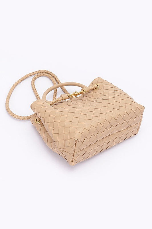 Weaved Faux Leather Convertible Shoulder Bag