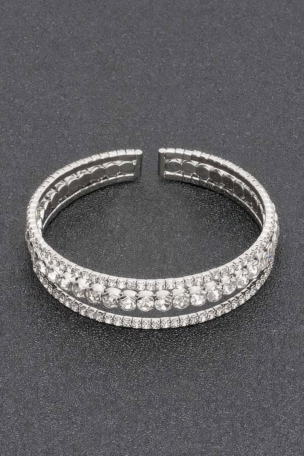 Design: A stunning display of clear rhinestones set in a sleek metallic band, creating a radiant effect that enhances any outfit