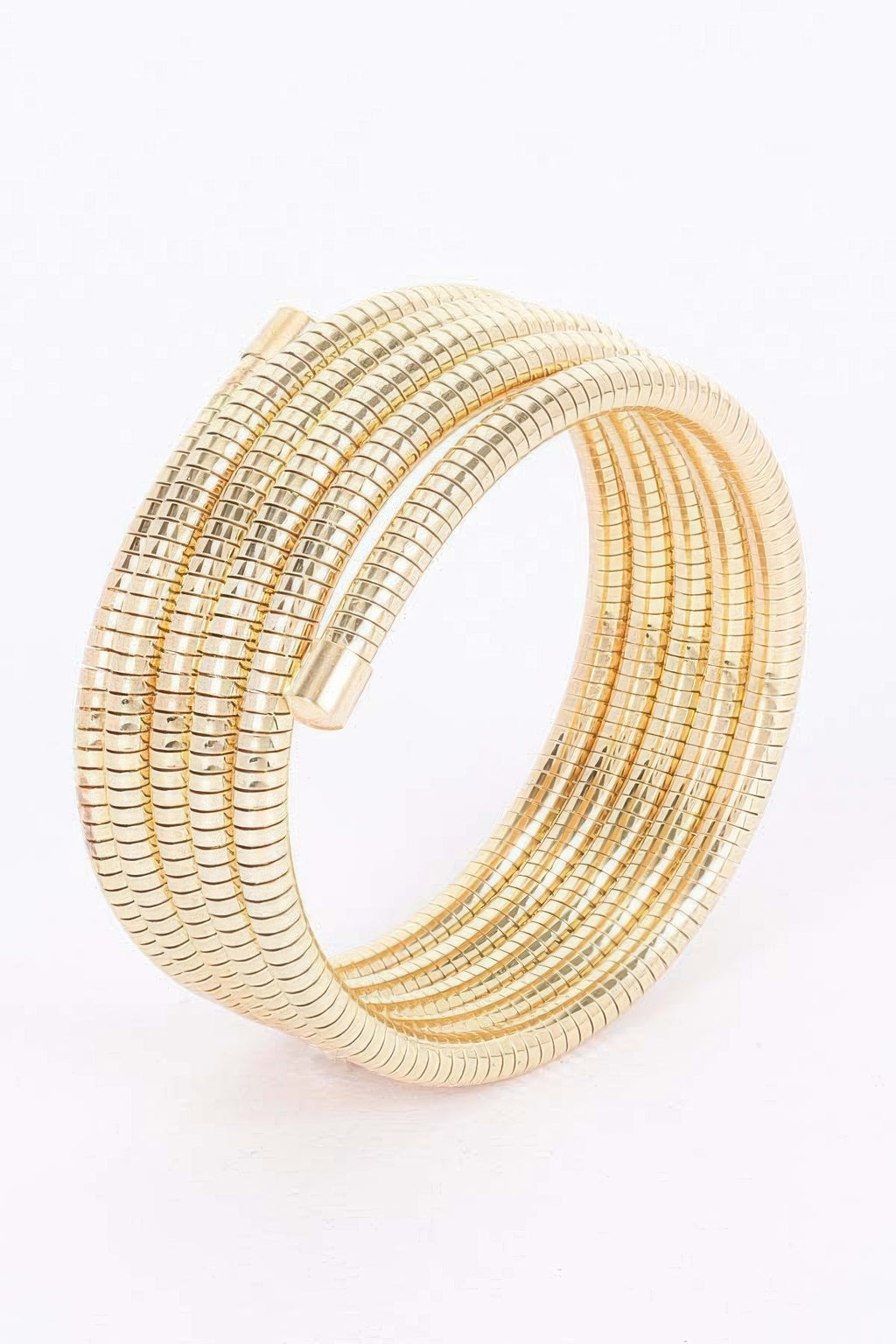The Multi Metal Spring Bracelet stands out with its unique spiral design and luxurious gold-plated finish. Its modern aesthetic adds a touch of elegance to any outfit, while the comfortable fit ensures you can wear it all day without issue. This bracelet is perfect for those who appreciate both style and sophistication.