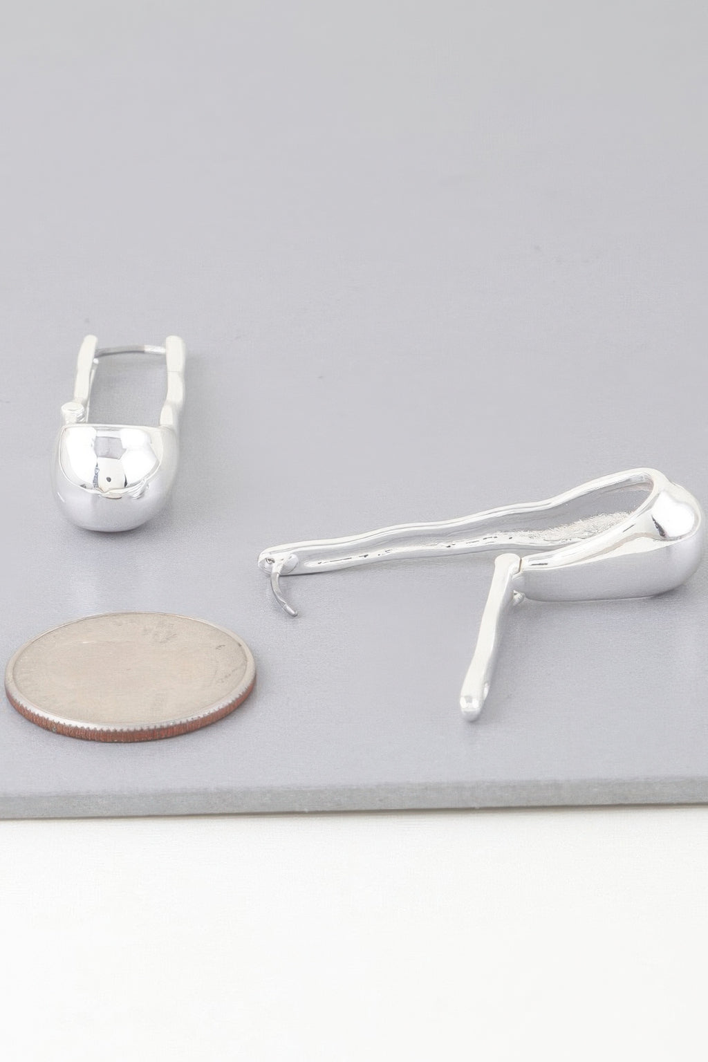 These earrings offer a unique, modern take on the traditional hoop design. Their shiny, smooth surface and melt-inspired shape add an element of contemporary elegance that's perfect for any occasion.
