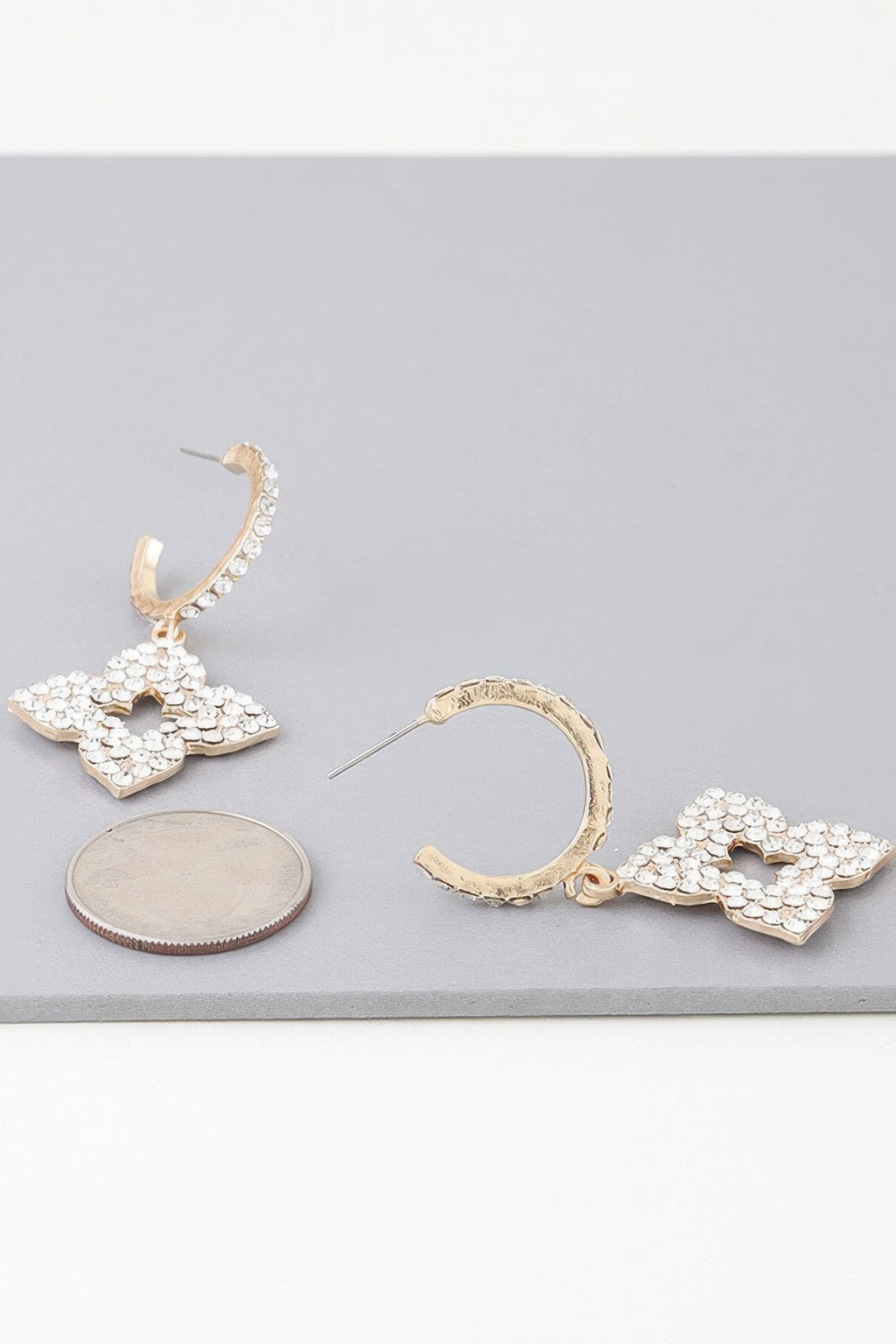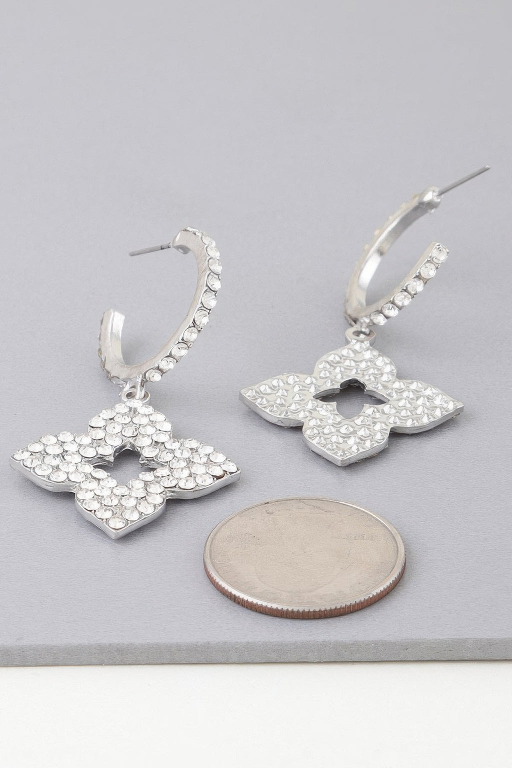 These earrings combine the timeless beauty of a floral design with the elegance of clear rhinestones, making them a versatile accessory that adds a touch of sophistication and sparkle to any ensemble.