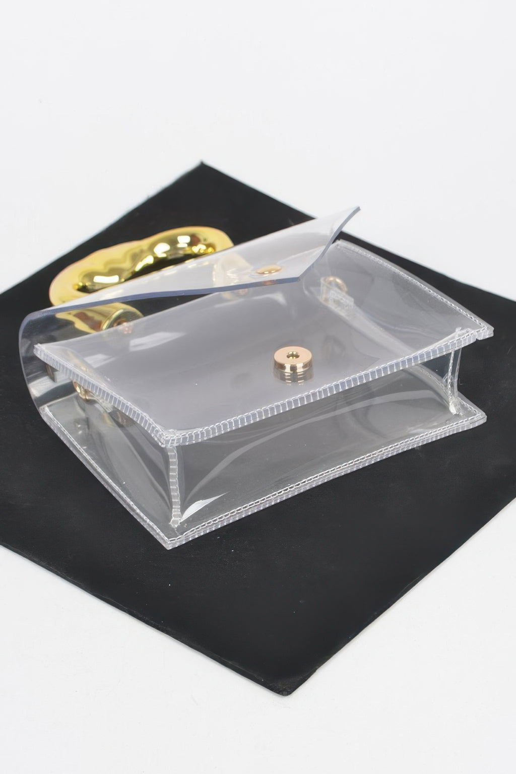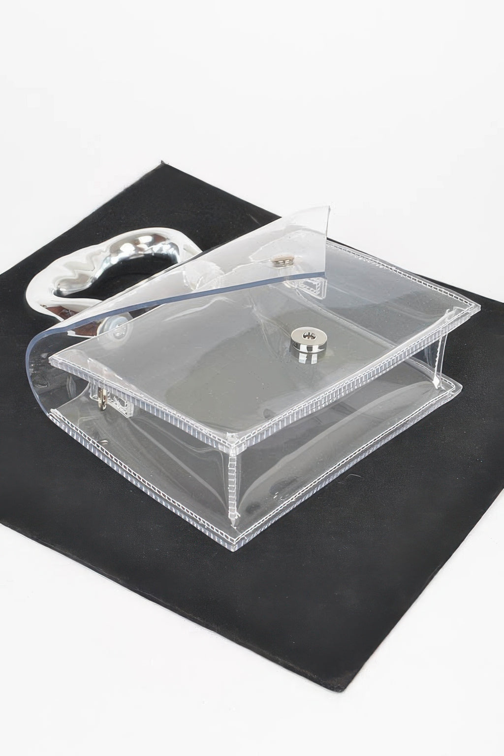 Elevate your accessory collection with our Transparent CCB Handle Flap Clutch, a chic and modern statement piece designed to add a touch of glamour to any outfit. Crafted with precision, this clutch combines sleek, minimalist design with practical functionality, making it a perfect addition to your wardrobe.