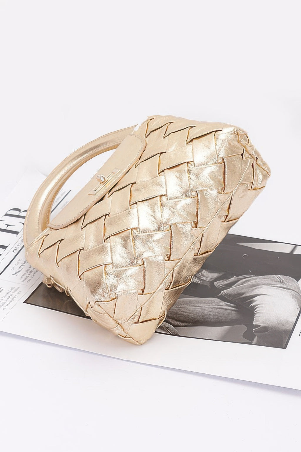 Add the Faux Metallic Leather Braided Embossed Handle Bag to your collection today and make a bold, luxurious statement wherever you go!
