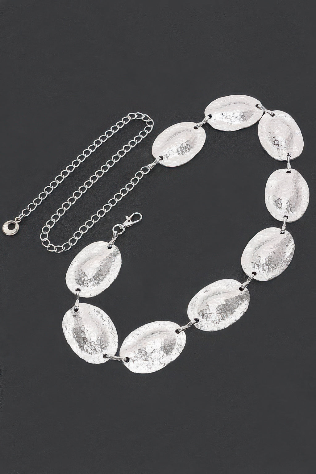 This belt seamlessly blends elegance and edge, adding a bold, sophisticated flair to both casual and dressy outfits. The shimmering discs create a striking visual effect, making it a must-have accessory for those looking to make a statement.