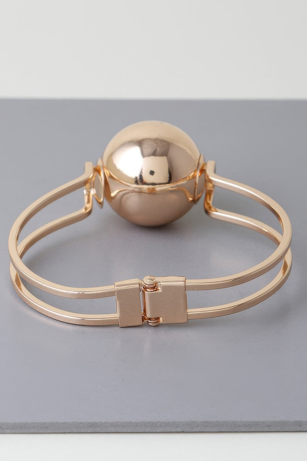 This bracelet combines modern design with elegant simplicity, making it the perfect accessory for those who appreciate minimalist yet impactful jewelry. The sleek gold or gold cream finish complements a variety of outfits, while the unique spherical design adds an unexpected touch of sophistication.