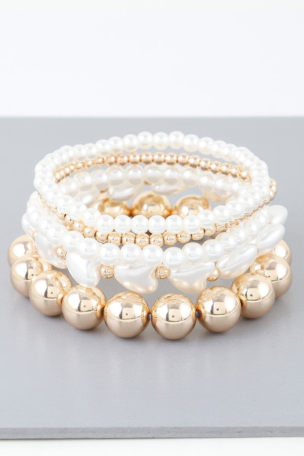 This bracelet combines the timeless appeal of heart-shaped stones with a modern beaded design, making it a perfect piece for adding warmth and charm to your look. The cream stones and gold finish make it versatile enough to pair with both casual and formal styles.