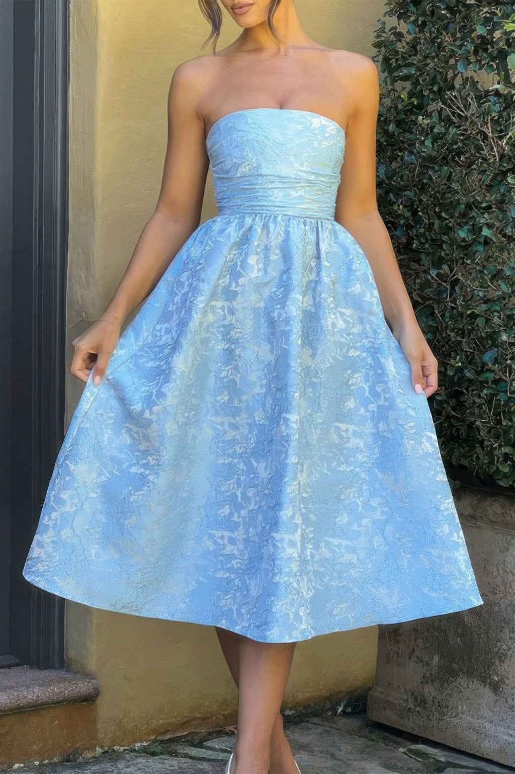 Step into timeless elegance with this A-line strapless jacquard satin embroidery dress, designed to make a lasting impression. Crafted from luxurious 100% polyester, this dress features a rich jacquard satin finish that adds texture and depth. The strapless neckline flatters the shoulders and neckline, while the delicate embroidery enhances the sophisticated appeal. The A-line silhouette offers a graceful flow, making it perfect for special occasions, evenings out, or any event where you want to feel effortlessly polished. Lightweight and beautifully detailed, this dress brings both comfort and refined style.