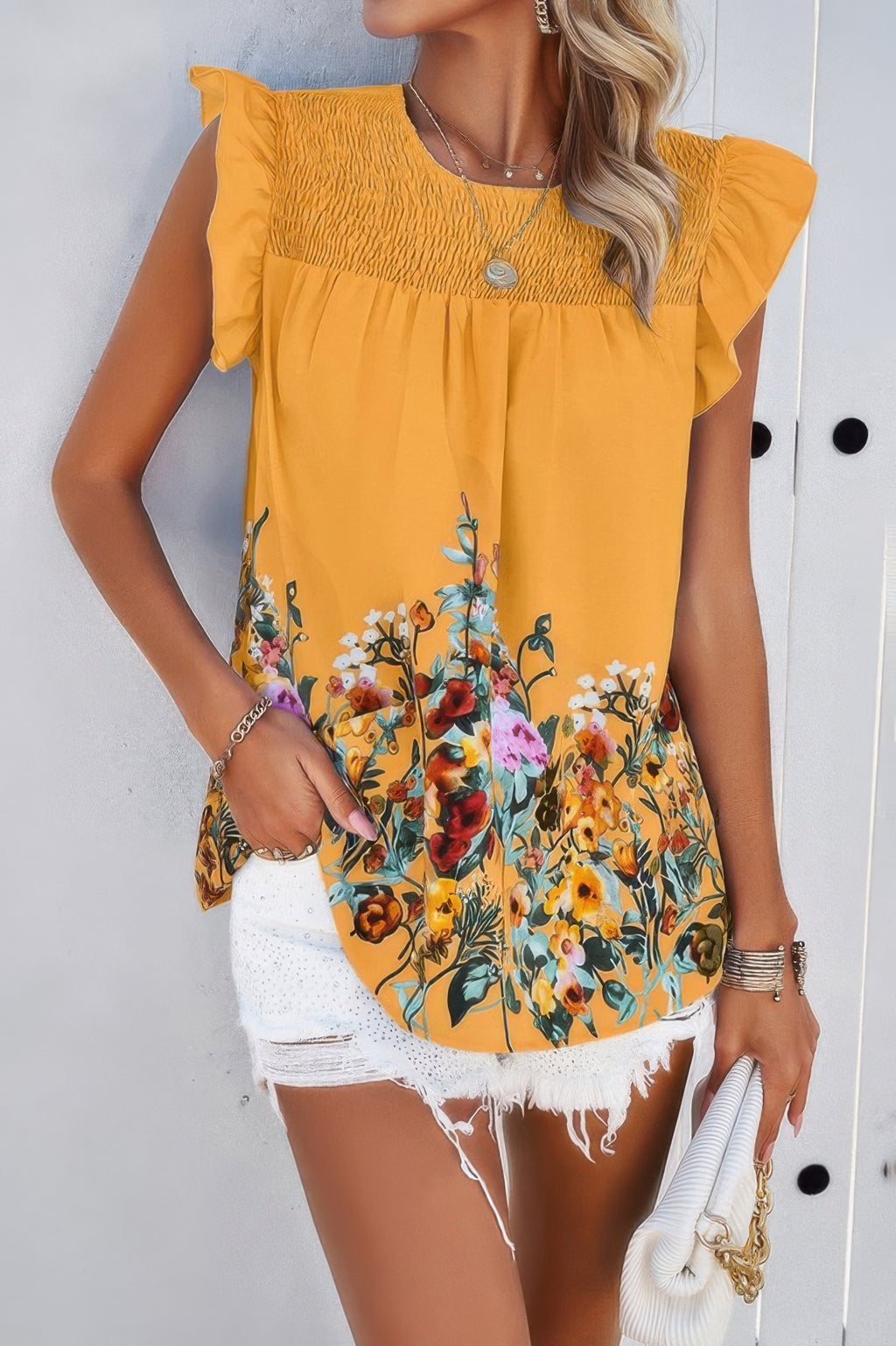 Add a touch of effortless charm to your wardrobe with this floral print round neck top. Designed with a relaxed, loose fit, this top offers all-day comfort without compromising on style. The delicate ruched detailing adds texture and a flattering silhouette, making it a versatile piece for any occasion. Crafted from soft, comfortable fabric, it's perfect for everything from casual outings to weekend getaways. Whether you're strolling through the park or meeting friends for lunch, this top brings a fresh, feminine feel to your look.