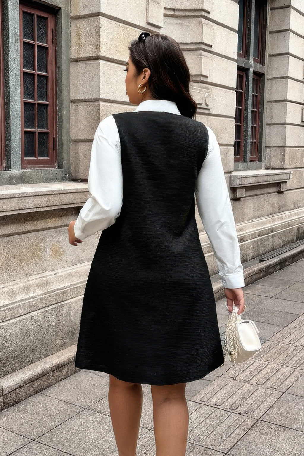 Scoop neckline and button-down front for classic style