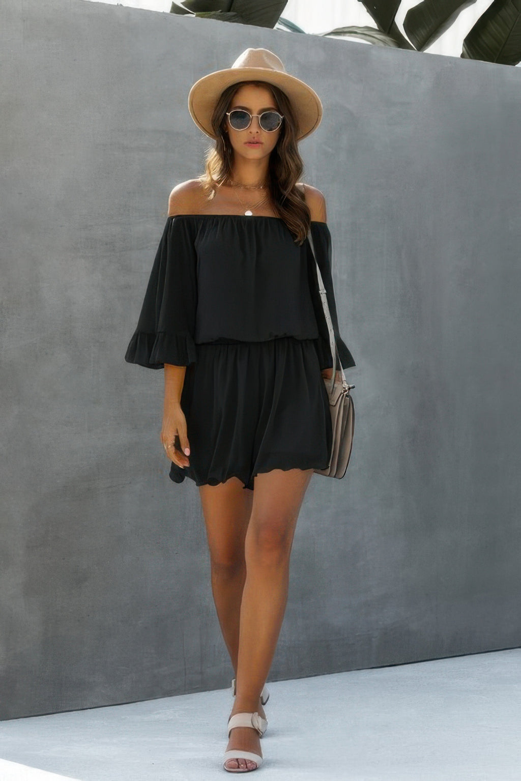This chiffon off shoulder flare sleeves loose fit romper is the ultimate blend of breezy comfort and effortless style. Crafted from 100% polyester, it features a lightweight, airy feel perfect for warm weather and relaxed outings. The off shoulder neckline and flowy flare sleeves create a feminine, boho-inspired silhouette, while the loose fit adds to the easygoing vibe. Whether you're heading to a casual party, an outdoor adventure, or a day out with friends, this romper will keep you cool, comfortable, and chic.